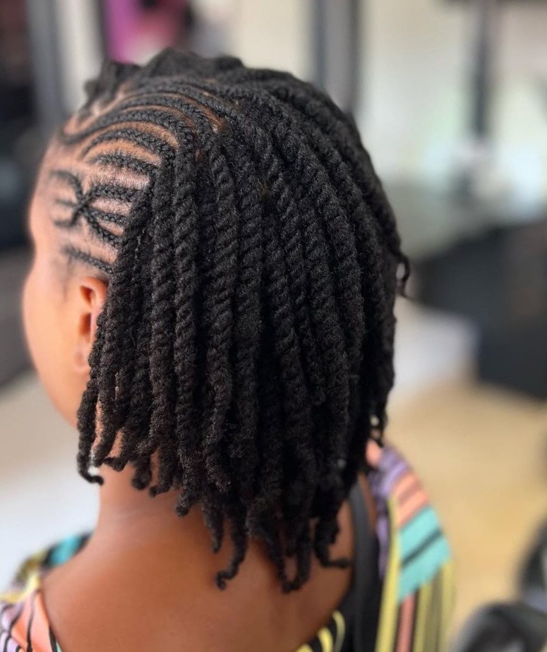 Instead of standard two-strand twists, elevate your look with the addition of braids. Cornrows are a good choice for those who want a long-lasting option. The long twists also provide versatility for various updos like a Mohawk or bun.