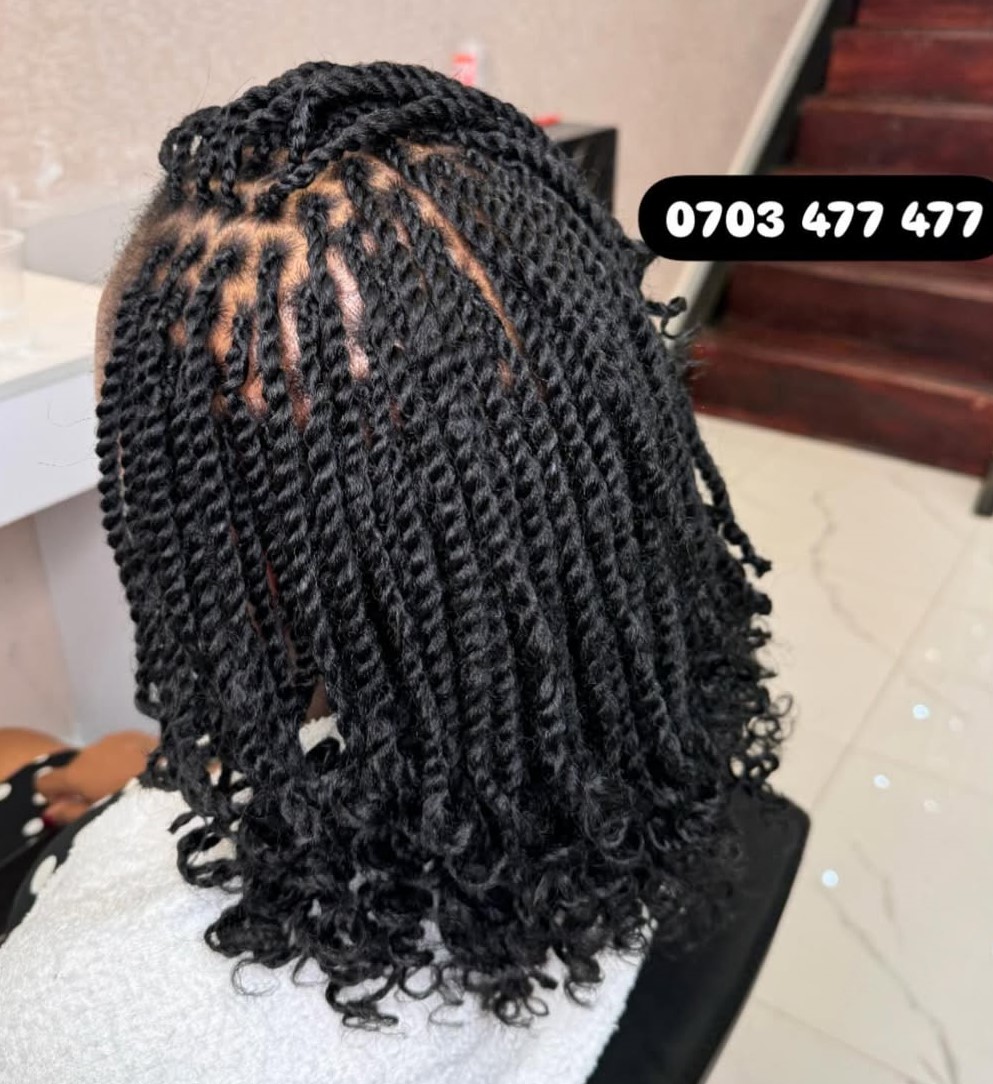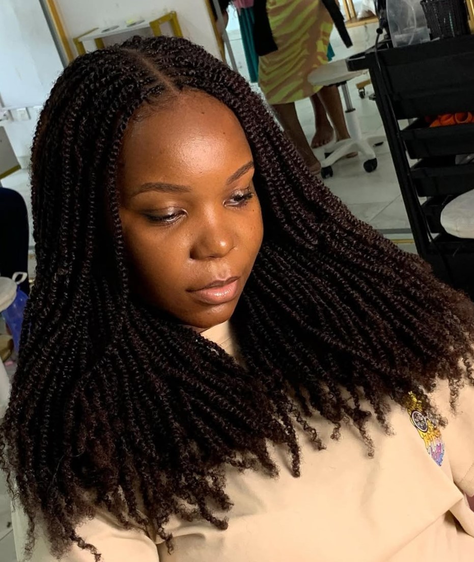 The combination of scalp braids and bouncy twisted bob is the ultimate dream, whether you twist your natural hair or add extensions! The accurate twists and mini cornrows can make your natural curls more manageable and reduce frizz. All you need is to apply moisturizer to your dry hair before twisting it to hydrate and nourish your curls.