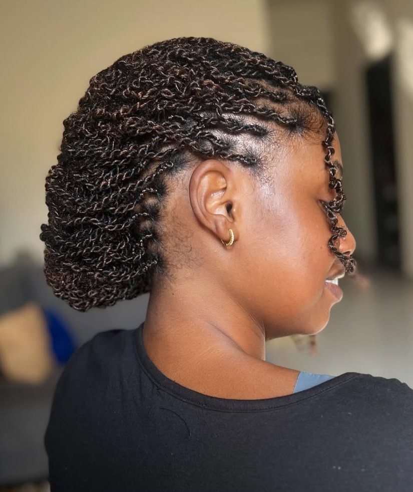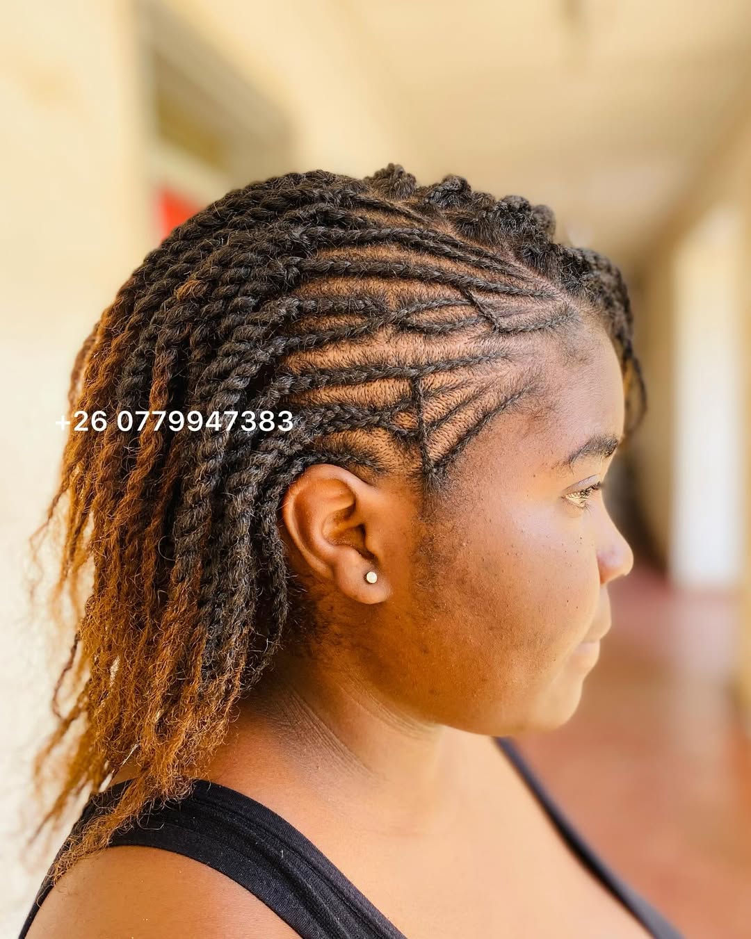 Having natural hair opens up a world of styling possibilities, and twists are a fantastic choice for protecting your strands and showcasing your style. Craft criss-cross cornrows and blend them with elegant twists, locking in the style with a light-hold hairspray for a polished finish.