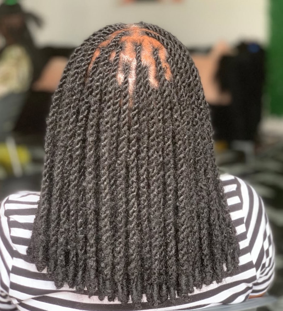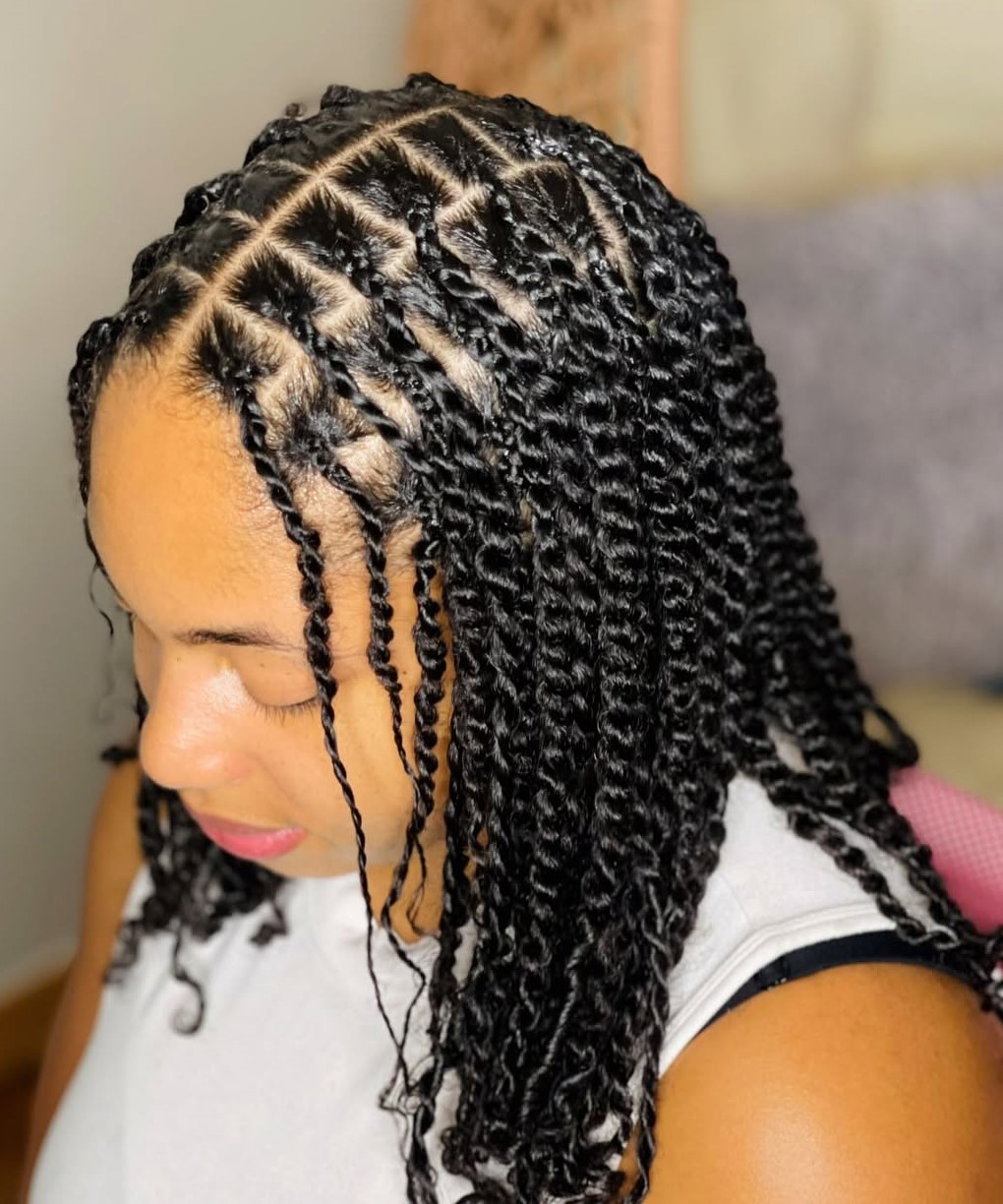 The combination of scalp braids and bouncy twisted bob is the ultimate dream, whether you twist your natural hair or add extensions! The accurate twists and mini cornrows can make your natural curls more manageable and reduce frizz. All you need is to apply moisturizer to your dry hair before twisting it to hydrate and nourish your curls.