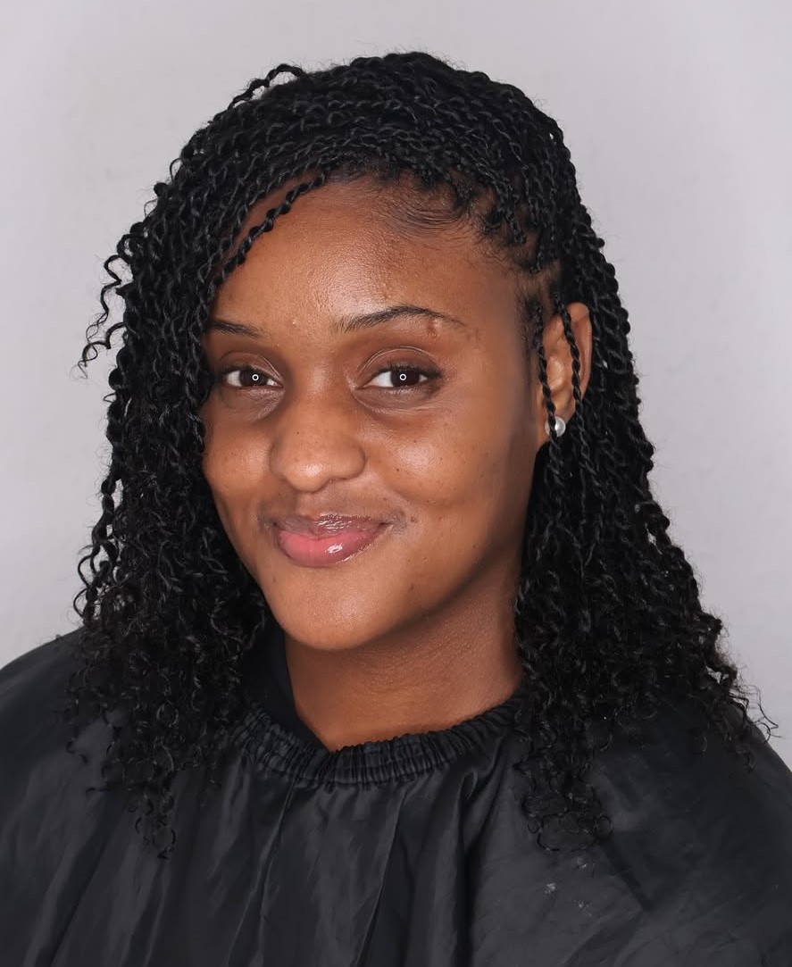 You just have to quickly glance at her face to see that she’s thrilled with her hairstyle. Her hair has been styled with silky twists. The pieces have been tied into a high ponytail so all you see is her beautiful facial features.