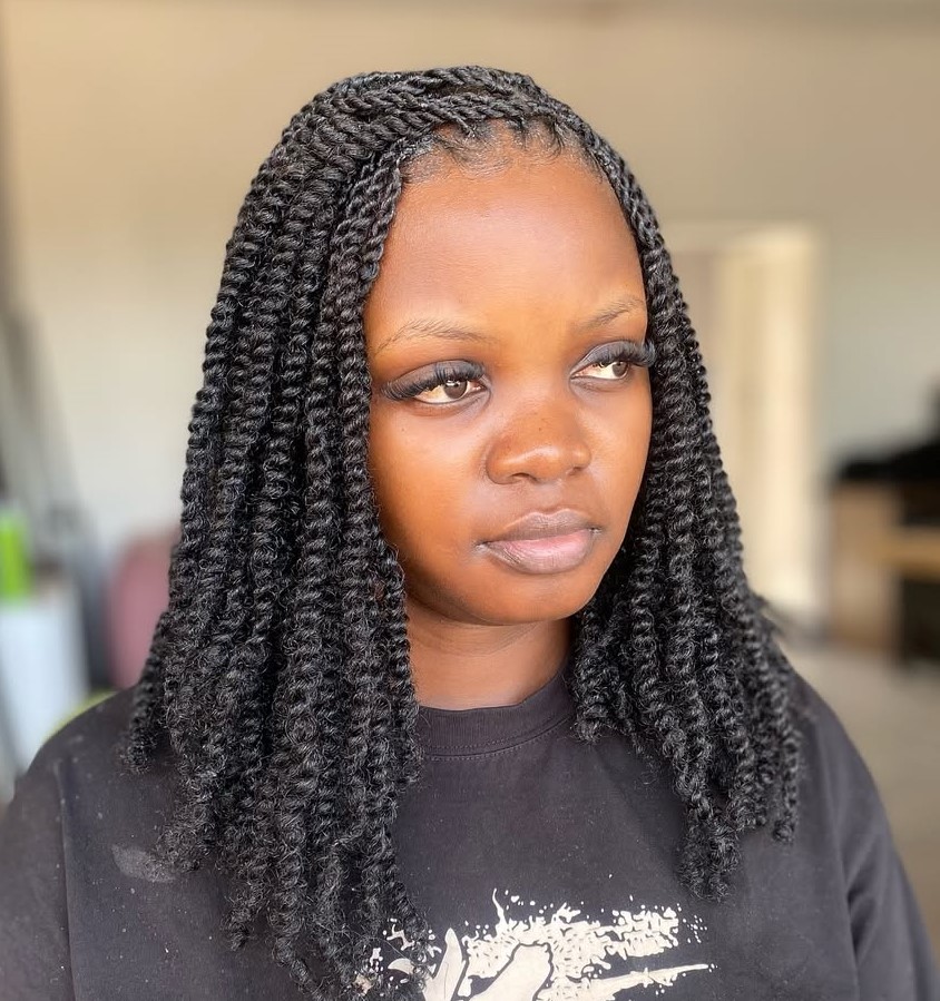 Whether worn down or styled into an updo, kinky twists offer a convenient and fashionable hairstyle option for women seeking a natural look with added flair. Alternatively, you can wear your twists half-up to give them a more modern and funky look.
