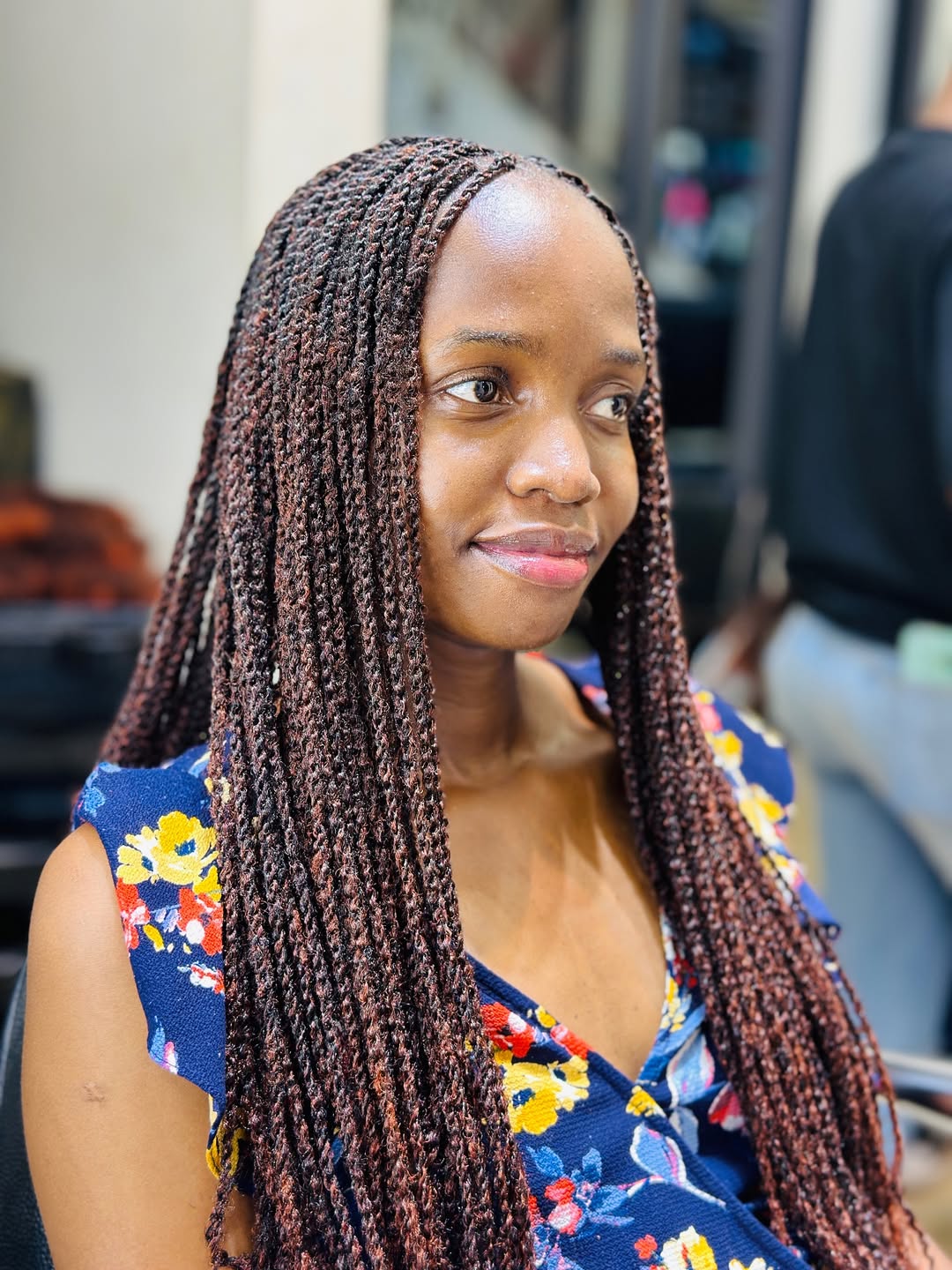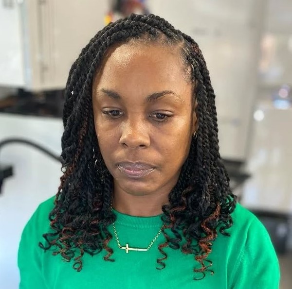 Express your creativity and individuality through diverse styling options and color combinations! If you’re not a big fan of intricate styles, stop at the last, and enhance the visual impact of your twists with the rich caramel hue.