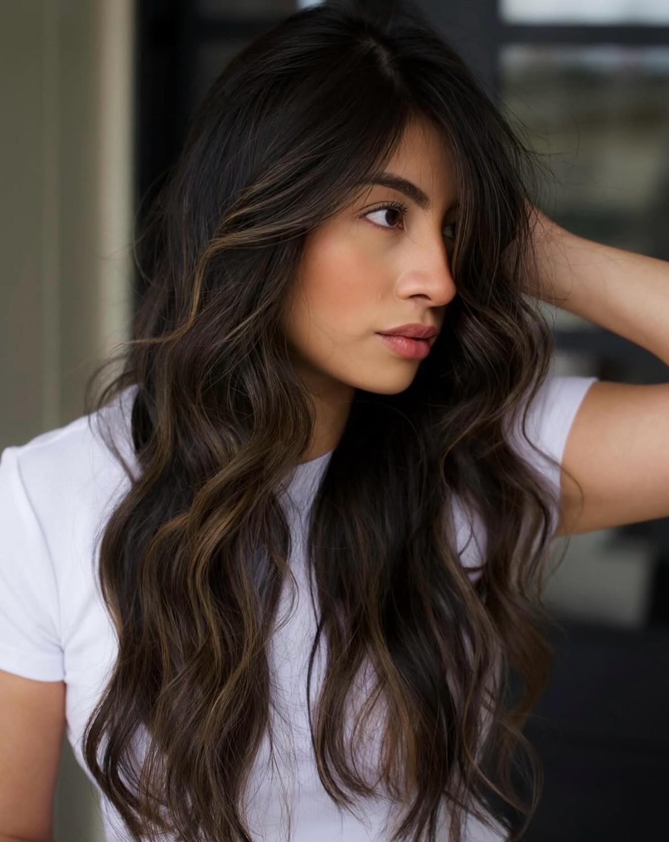 If you’re too proud of your dark chocolate hair color to ever dream of bringing in other colors in highlights, you can use your cut to give your shade a little dimension. When layers are added into long hair, they allow the previously weighed-down strands a chance for more movement, which can result in some effortlessly tousled texture.