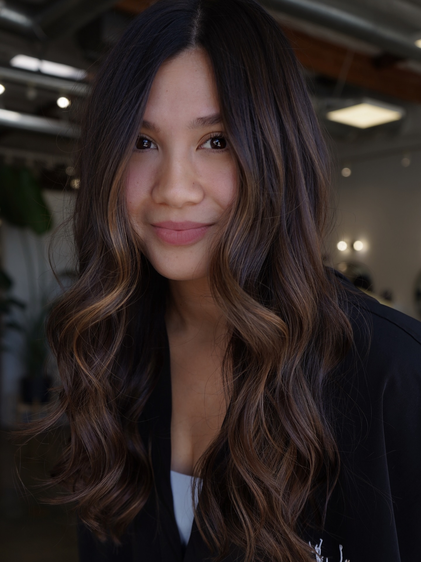 Could black hair be any more stunning than with chocolate and bronze highlights? A few well-placed highlights can not only help frame the face, but bring light to your complexion. A perfect look for the office or a fun weekend out.