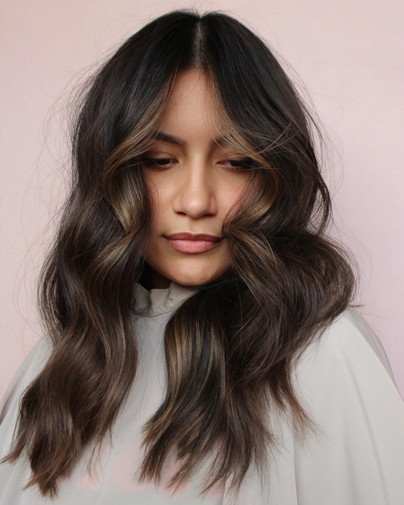 When you’ve got a neutral, medium chocolate brown hair as your base, who says you have to stick to one tone for your highlights? Cool and warm, light and dark shades play well together when balayaged properly, and the outcome is a unique, multi-hued finish that appears creative and carefree, not messy or streaky.