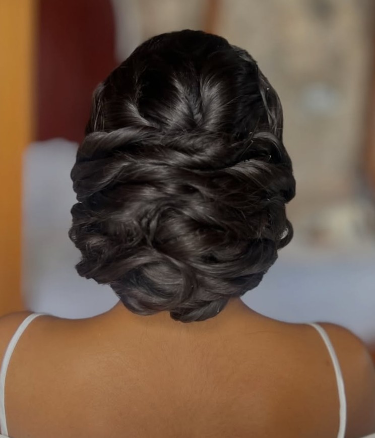 The perfect style for keeping your hair off your back and neck. Its elegant yet fun and is a great look for weddings with a more laid-back vibe.