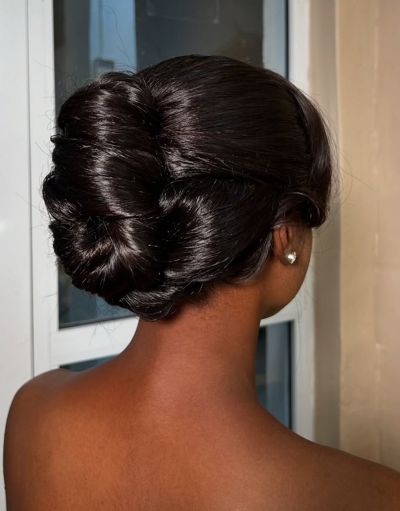 Chignons are synonymous with vintage glamor and formality. The simple elegance of this style means it will always be among the top contenders when it comes to wedding hairstyles. Whether you have relaxed hair or natural hair, if you can pull your hair back to your nape, you can create the perfect chignon and if all else fails, there’s always extensions for that bit of extra length.