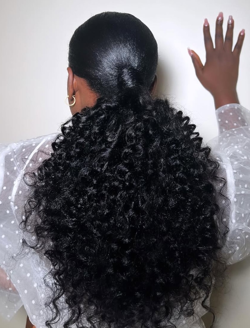 Voluminous curls are also a contender when it comes to wedding styles. The style works great on relaxed hair but can also be achieved on natural and curly hair that has been stretched, with or without the use of heat.