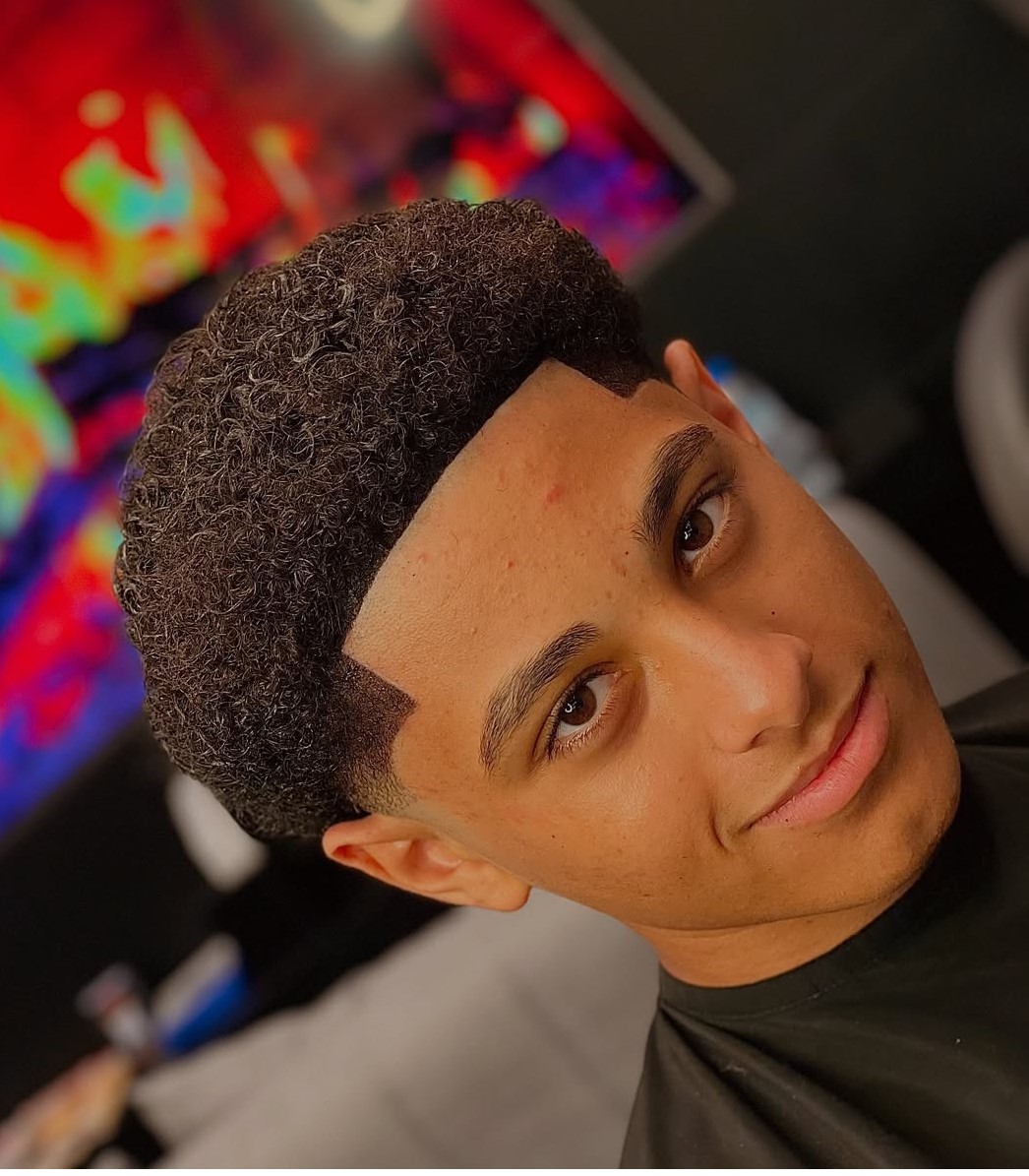 The high fade with a fun mass of curls is a style that won’t be passed unnoticed. The blonde hair ultimately makes a statement and complements the afro curls. Don’t be afraid to experiment with different colors if you want to achieve a truly standout appearance.