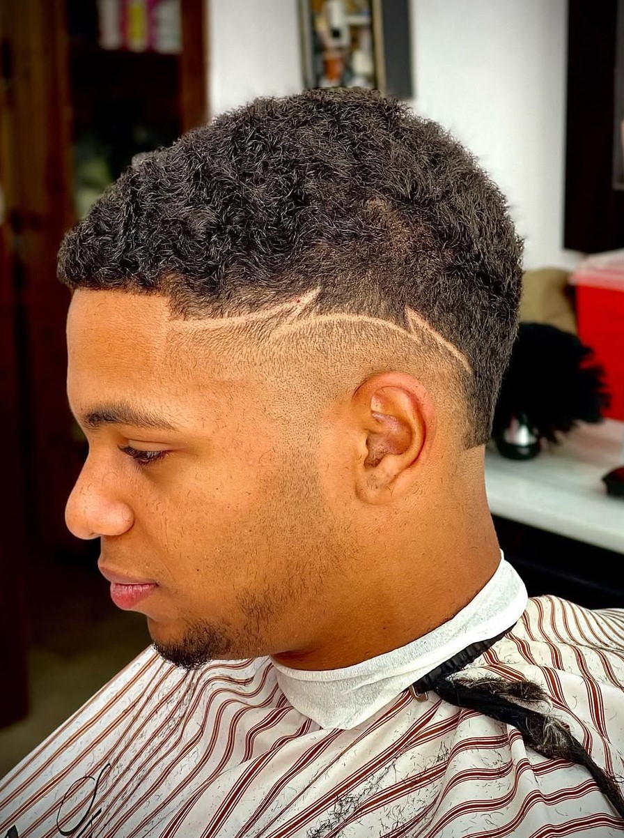 The skin fade of the cut is made more unique by the dramatic shaved lines on the sides. It’s different, creative, inspiring, and absolutely a head-turner!