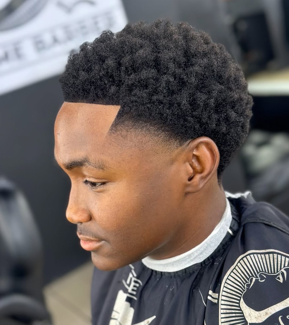 Curly hair can be shown off even in very short hairstyles. Let the curls thrive on the top and keep the sides neat and polished with a high fade. Use a side part to distinguish the two sections if you want a sharper look or let them blend seamlessly.