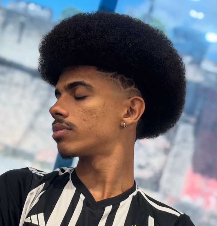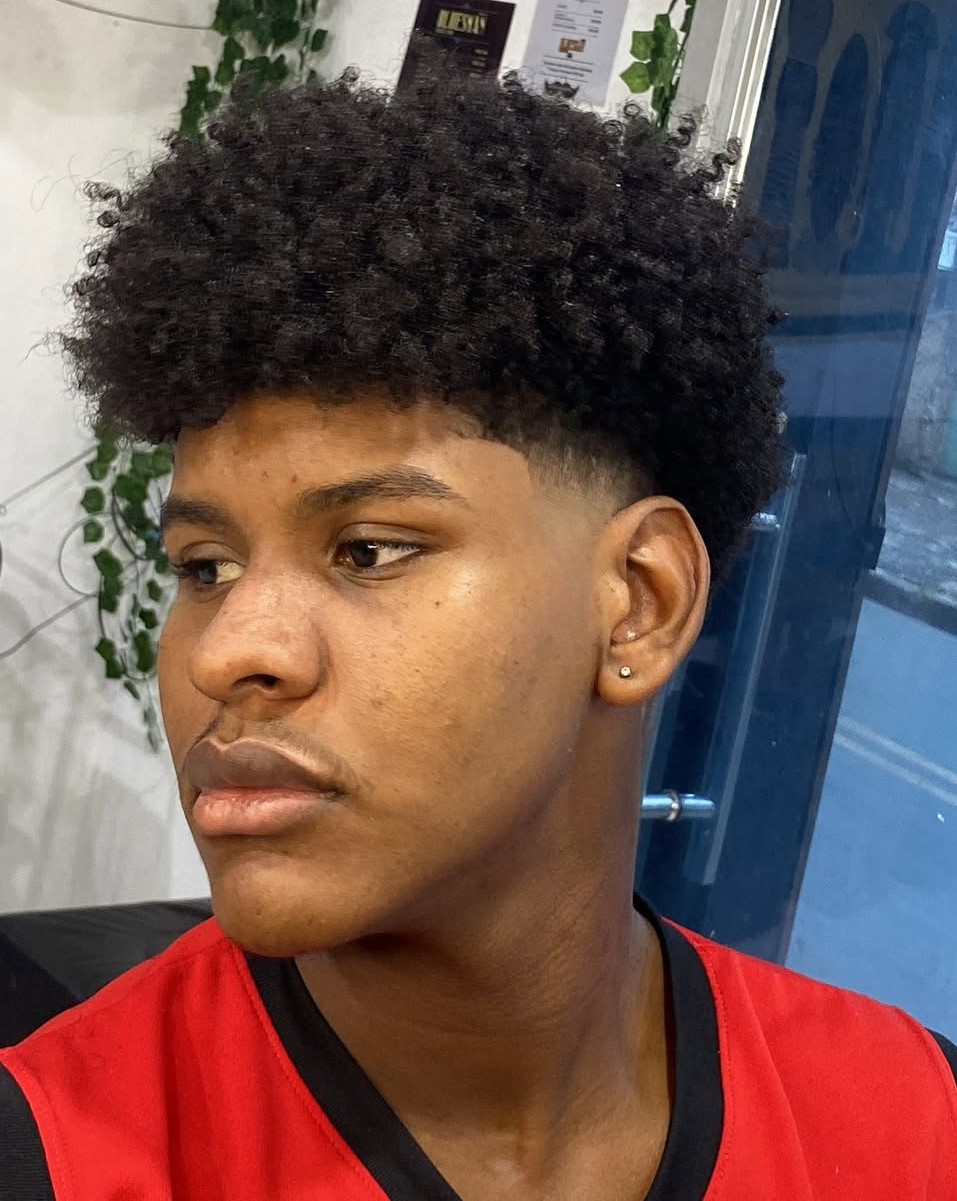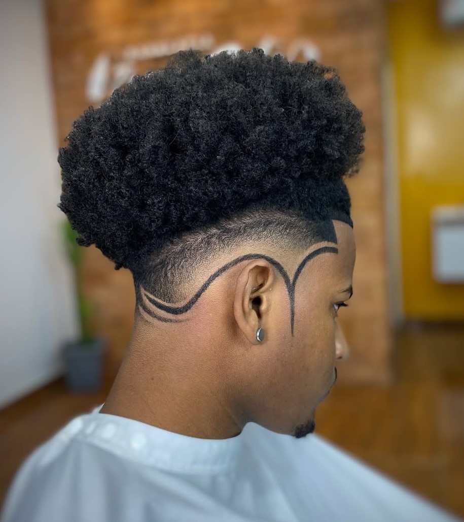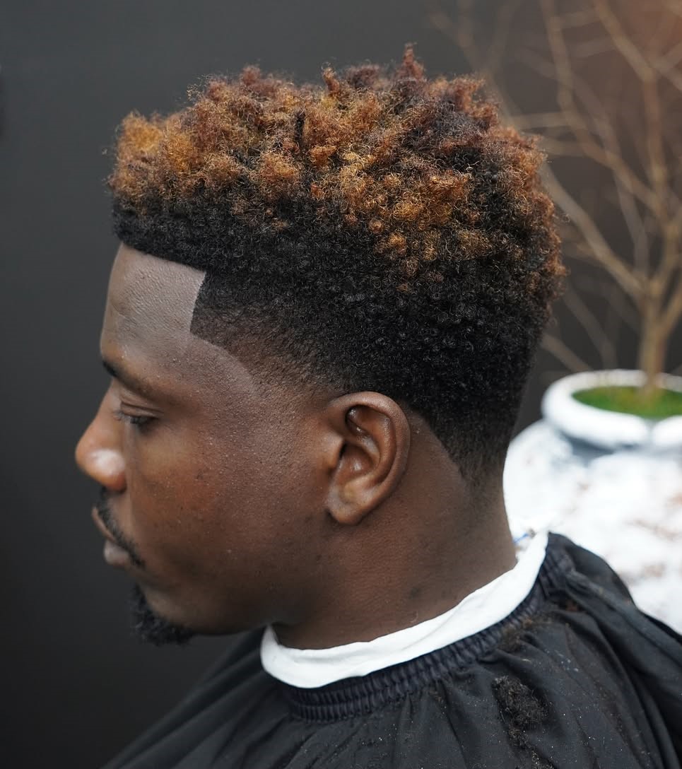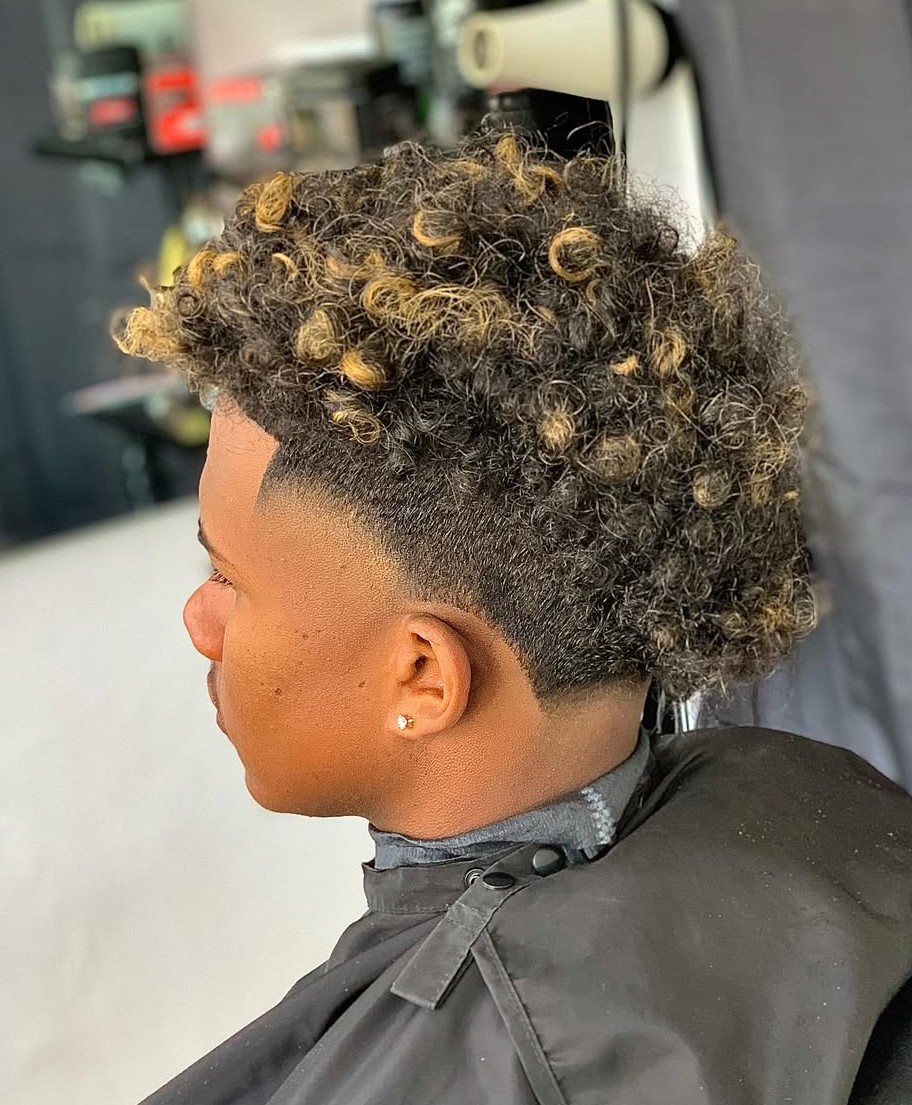 The high fade with a fun mass of curls is a style that won’t be passed unnoticed. The blonde hair ultimately makes a statement and complements the afro curls. Don’t be afraid to experiment with different colors if you want to achieve a truly standout appearance.