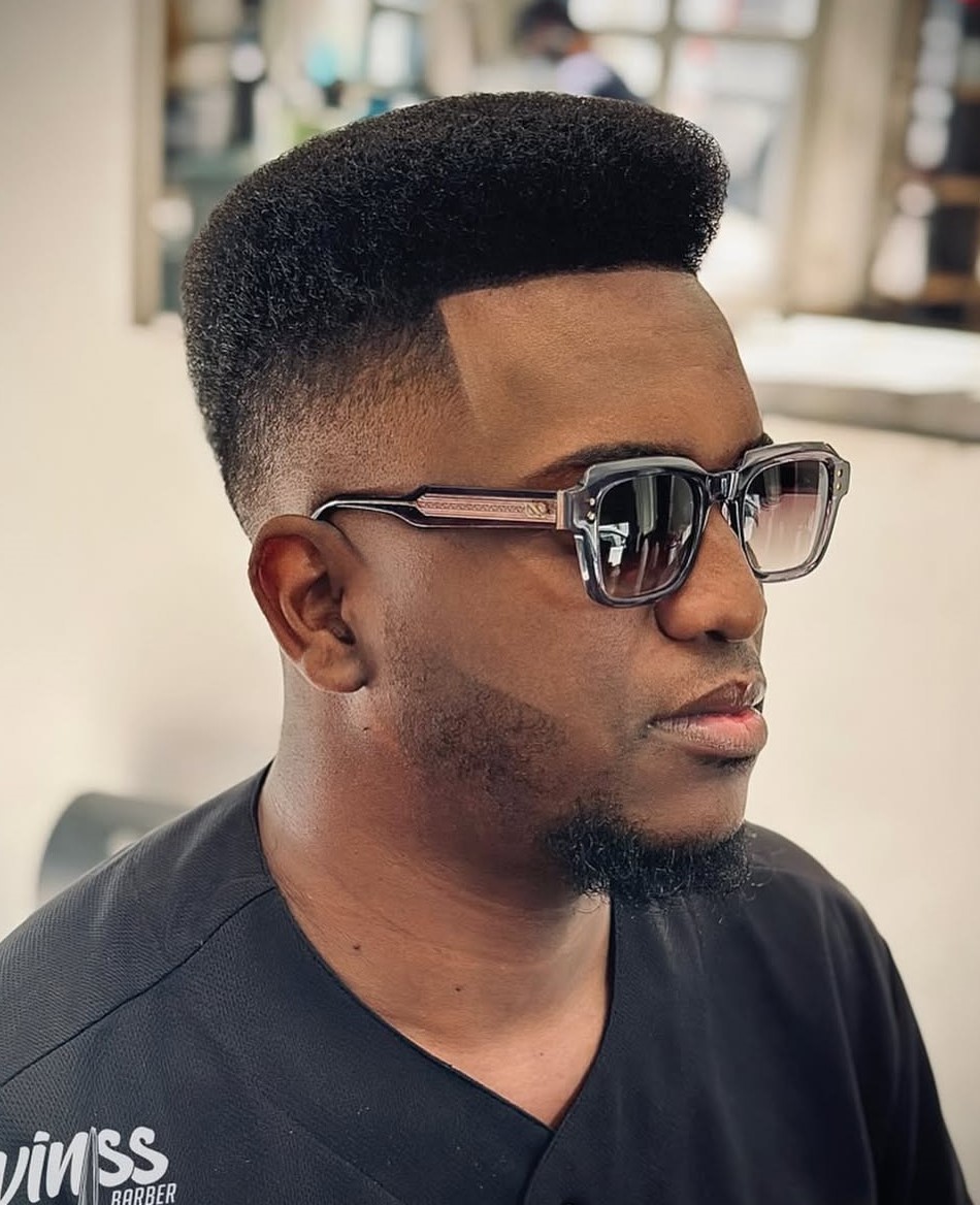 Here the high fade is emphasized by the shaved design. The combination of different textures from the shaved hair to the twisted curls creates an overall appearance that is edgy, yet sophisticated. Finished off with a lighter color, this classy variation of the flat top offers you a bunch of new ideas on how to wear your hair in non-boring ways.