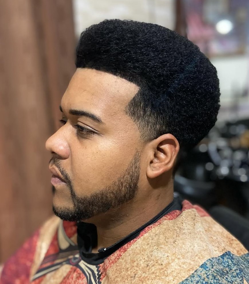 Here the high fade is emphasized by the shaved design. The combination of different textures from the shaved hair to the twisted curls creates an overall appearance that is edgy, yet sophisticated. Finished off with a lighter color, this classy variation of the flat top offers you a bunch of new ideas on how to wear your hair in non-boring ways.