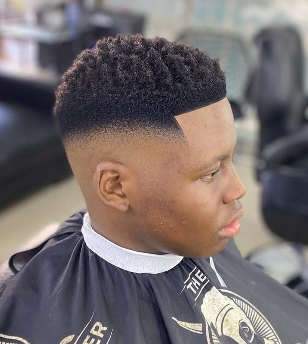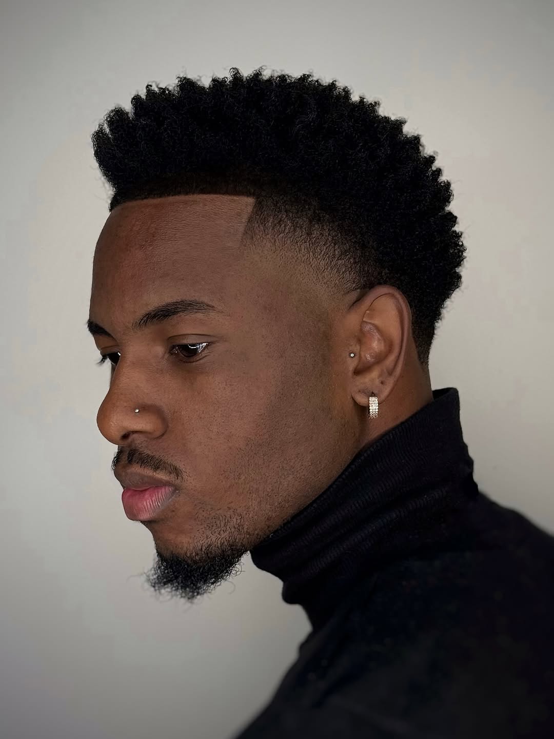 The high fade with a fun mass of curls is a style that won’t be passed unnoticed. The blonde hair ultimately makes a statement and complements the afro curls. Don’t be afraid to experiment with different colors if you want to achieve a truly standout appearance.