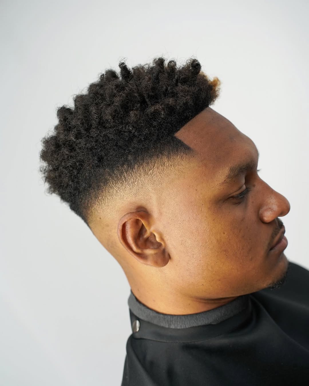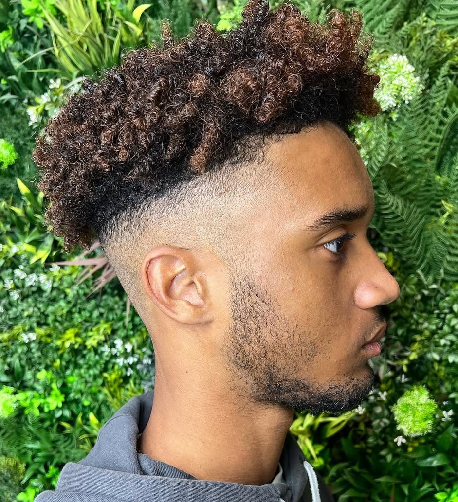 The high fade with a fun mass of curls is a style that won’t be passed unnoticed. The blonde hair ultimately makes a statement and complements the afro curls. Don’t be afraid to experiment with different colors if you want to achieve a truly standout appearance.