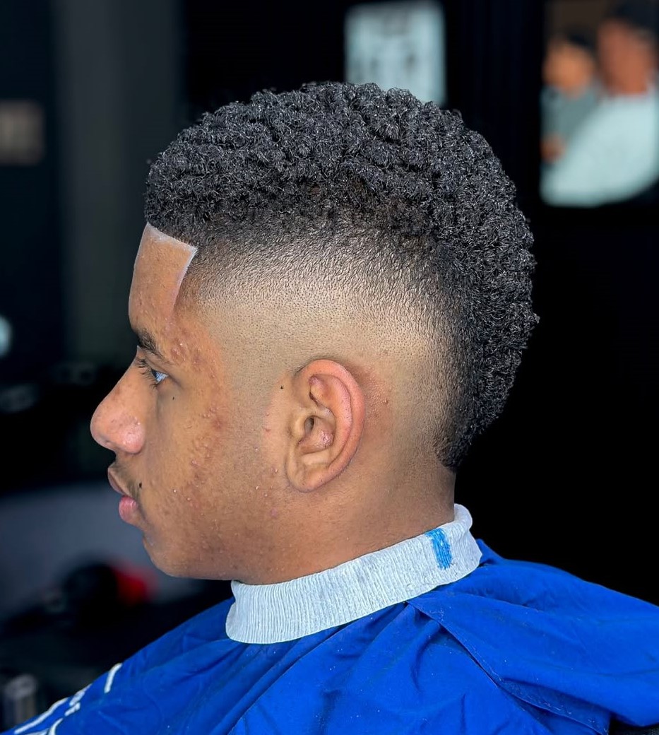 Curly hair can be shown off even in very short hairstyles. Let the curls thrive on the top and keep the sides neat and polished with a high fade. Use a side part to distinguish the two sections if you want a sharper look or let them blend seamlessly.