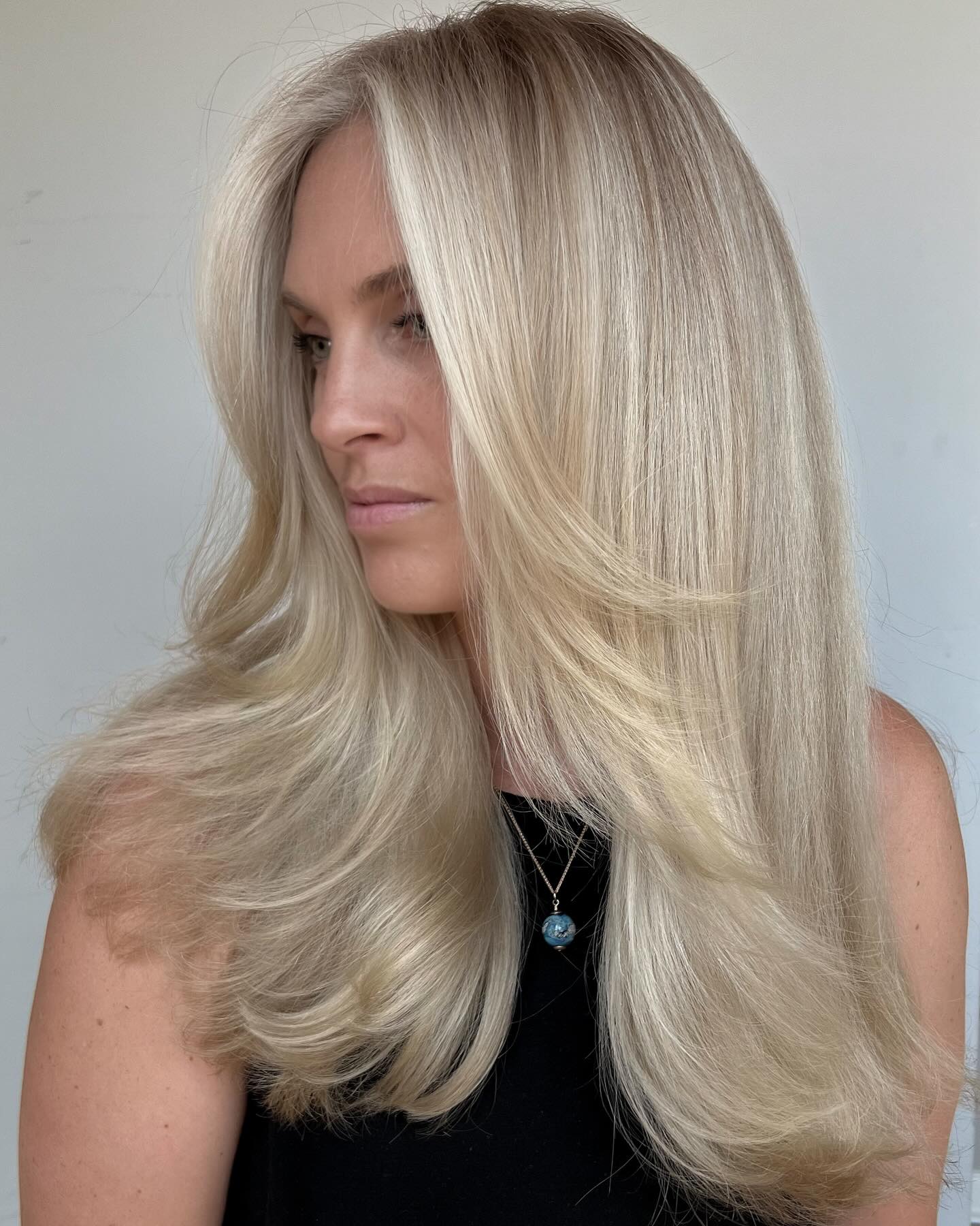 With this warm, beachy blonde color, you can embrace summer vibes all year round, rain or shine. The secret lies in natural-looking blended highlights, achieved through mixing different shades of blonde.