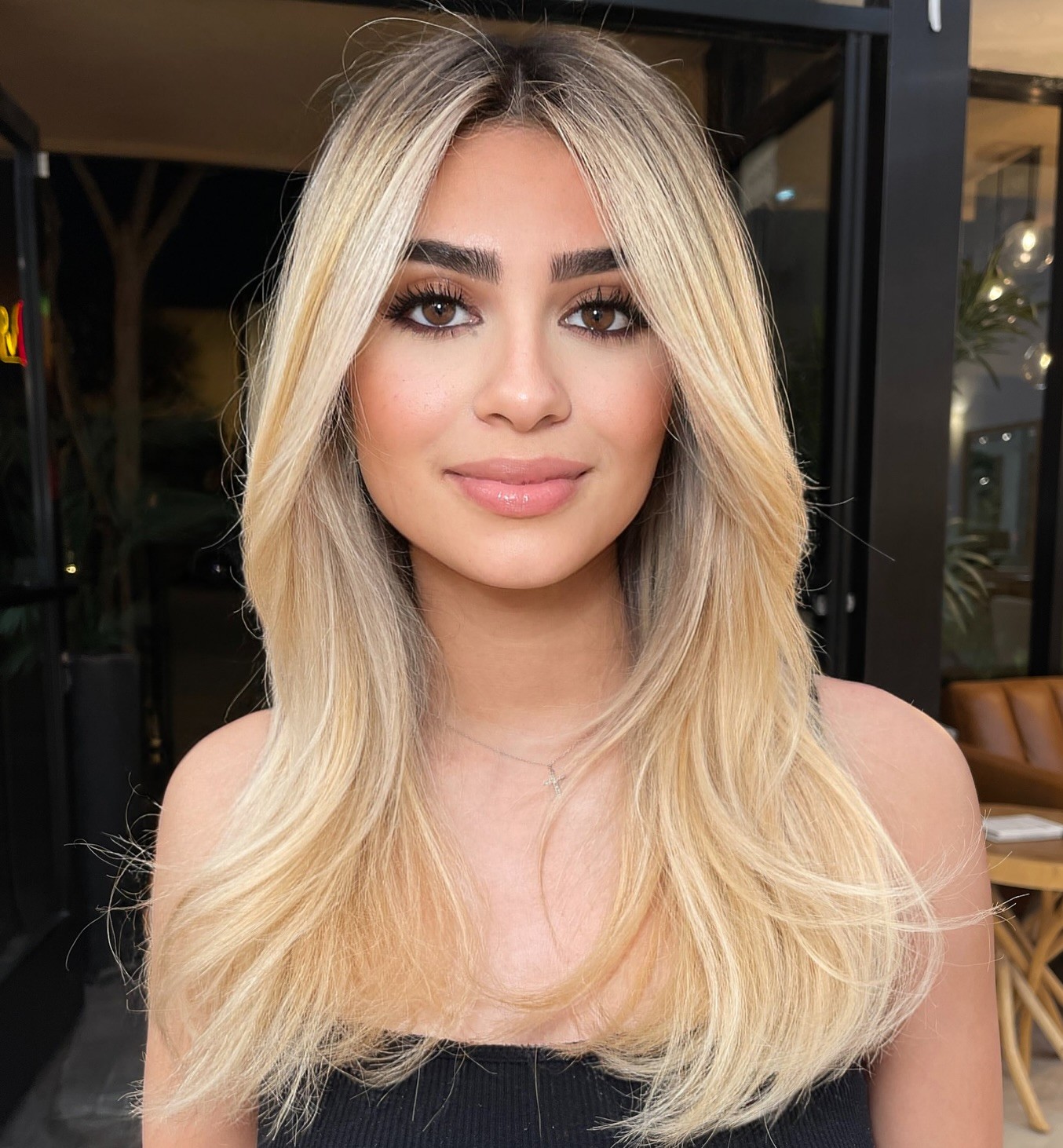 Long locks offer the perfect canvas for layering and whimsy coloring, allowing you to adjust your look depending on your personal preferences. For this soft, delicate hairstyle, ask for a middle part and face-framing layers to keep the symmetry of the haircut and gently frame your face.