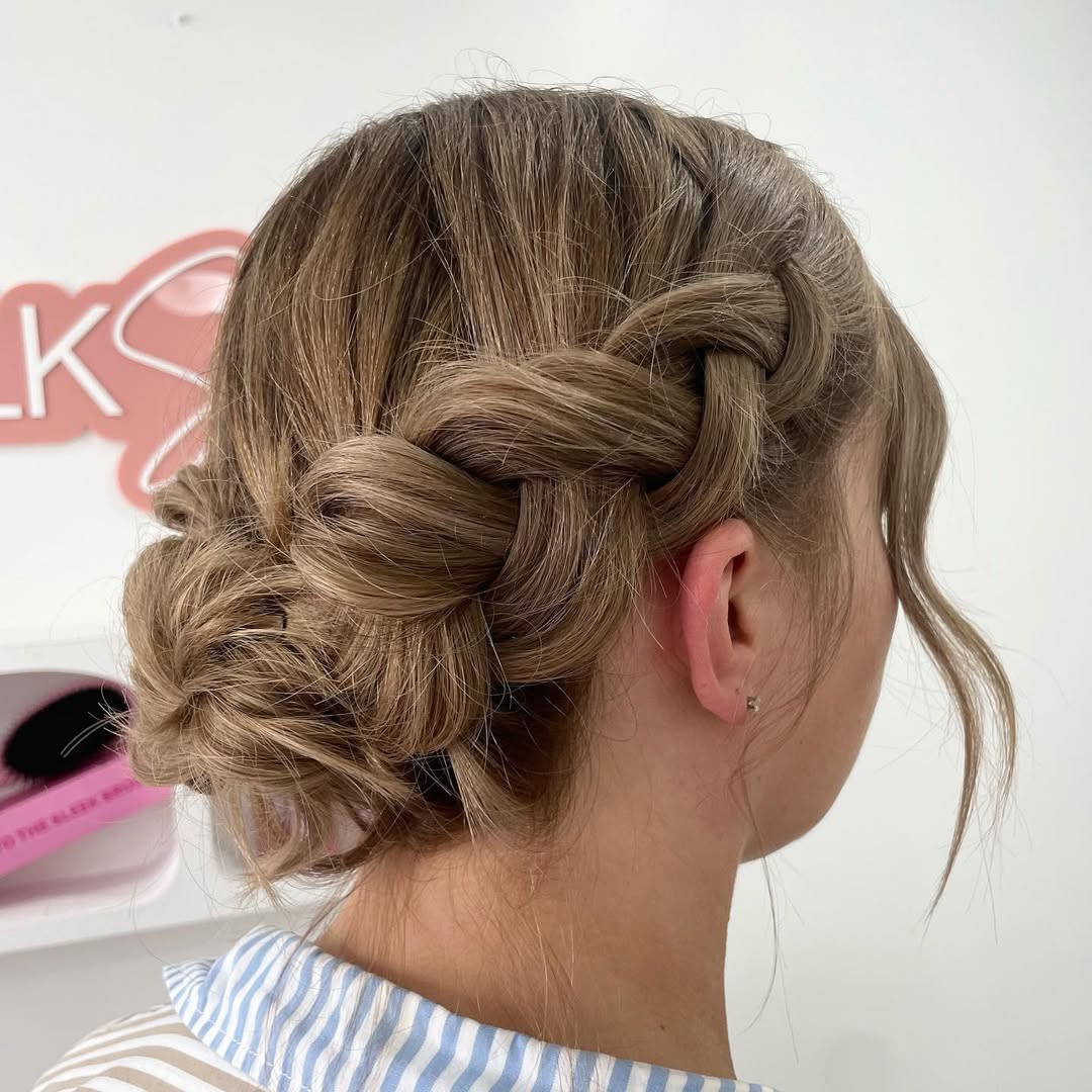 You can’t go wrong with a half up half down hairstyle – so versatile and flattering, it complements any face shape and is easy and comfortable to wear. To say the least, the chunky braids and soft waves combo will look particularly flattering on shorter lengths while maintaining the body of the hair.