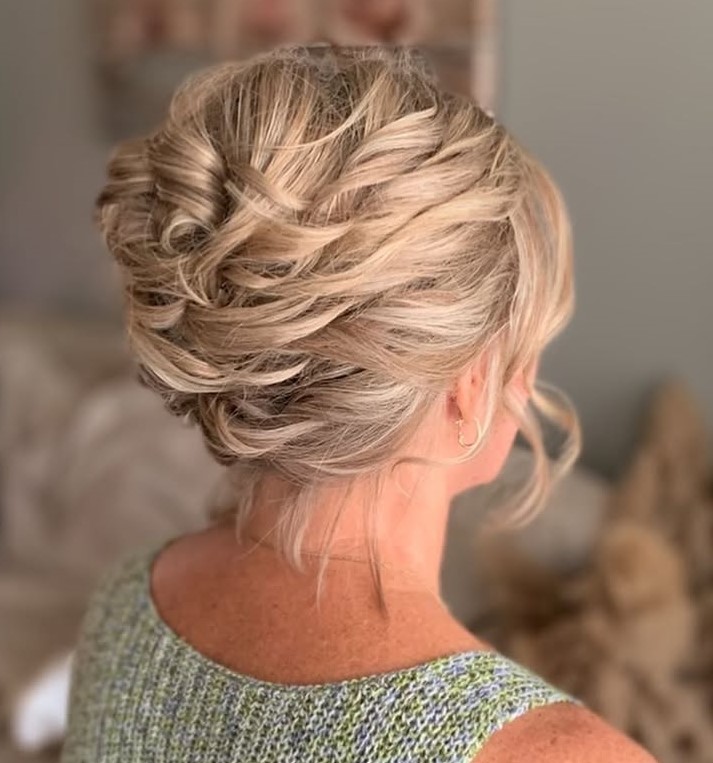 There are plenty of great styles to choose from for brides and bridesmaids, including this curly ‘do that is twisted and held up in place with hairpins. Add some flowers or jewels to fancy it up further.