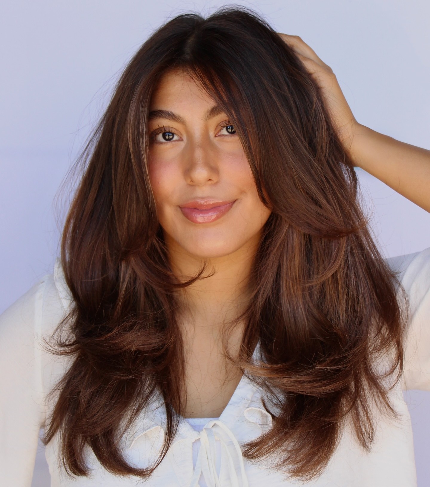 If you’ve got long hair and a long face shape, go for wavy layered hairstyles that break the length of your hair and don’t drag your face down. A classy and timeless style, it truly complements your face and is super versatile.