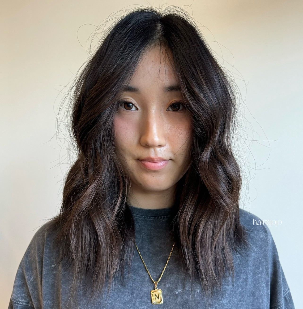 Framing layers are always a good pick! To enhance the layering of your long haircut, try curling your tresses in alternate directions or add curtain bangs. Tousled beach waves are a really cute look that anyone can pull off.