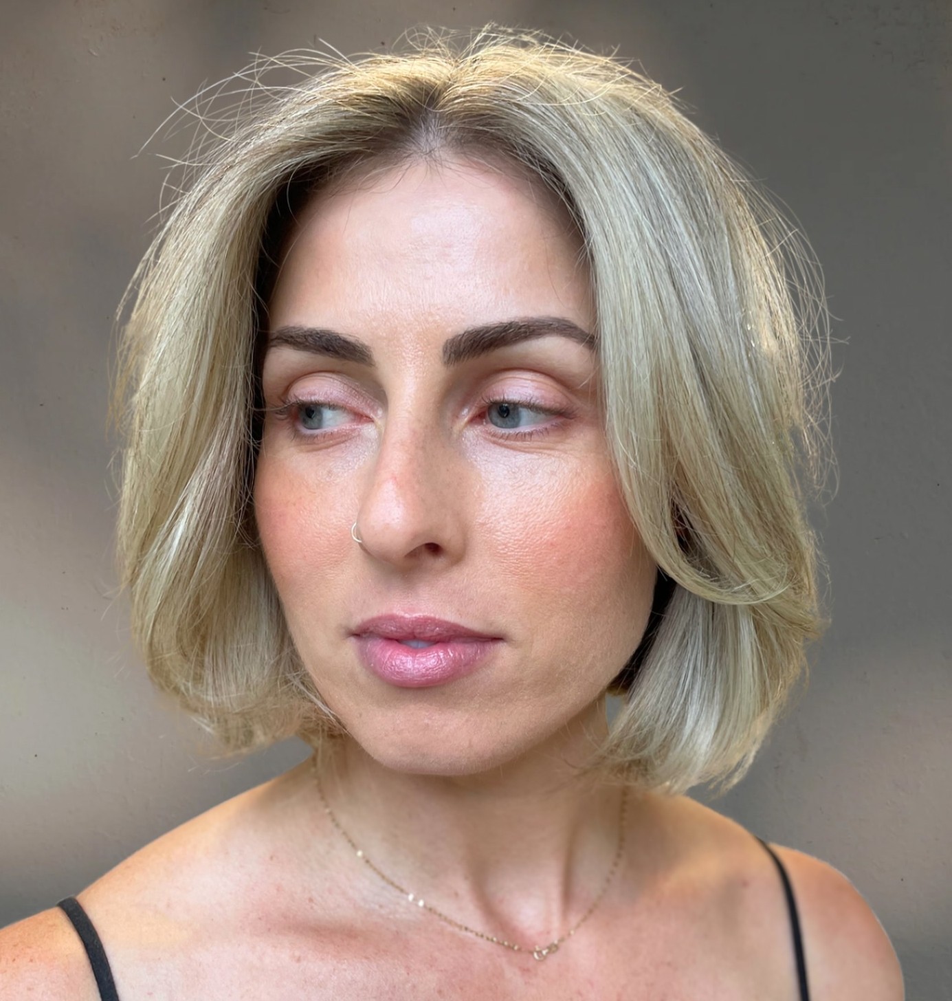 Bangs aren’t always necessary to flatter the face, as this example shows. A razored blonde lob can build body around your face and look effortlessly chic, especially if you ask your hairdresser to put in some extra feathered face-framing layers.
