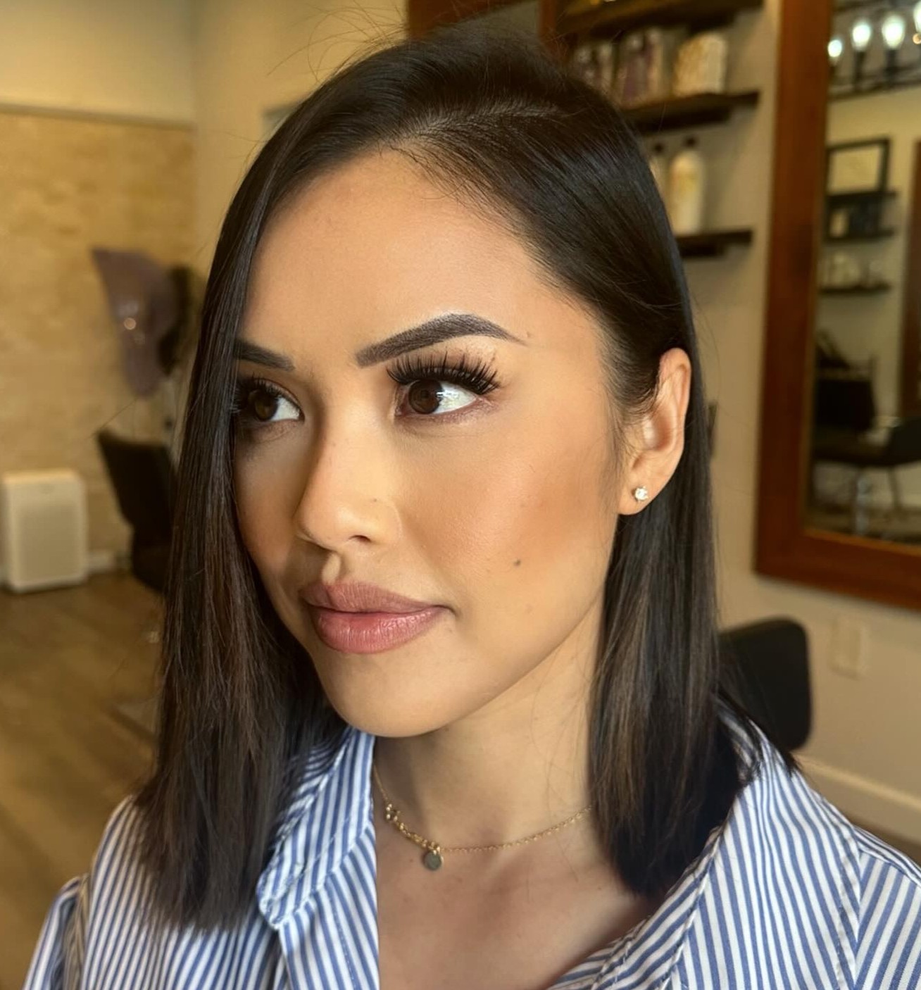 Choppy bob hairstyles are a great way to add depth to fine hair and create a more balanced look. Ask your stylist for layers that fall at your cheekbones to help visually shorten and shape your face.