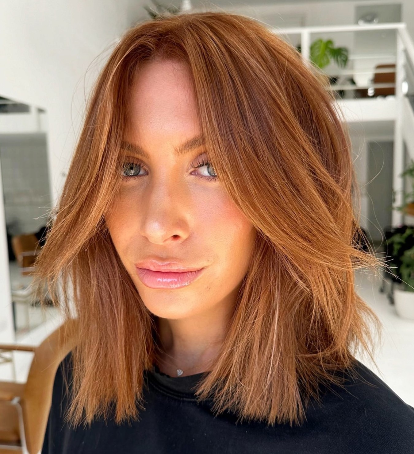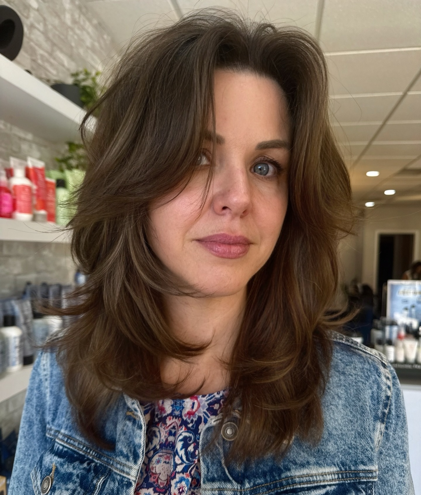 Nothing works better with an oblong face shape than choppy layers. This slightly disheveled cut with the windblown effect helps draw attention to the eyes and lips. With so much volume and texture, you absolutely can’t go wrong!