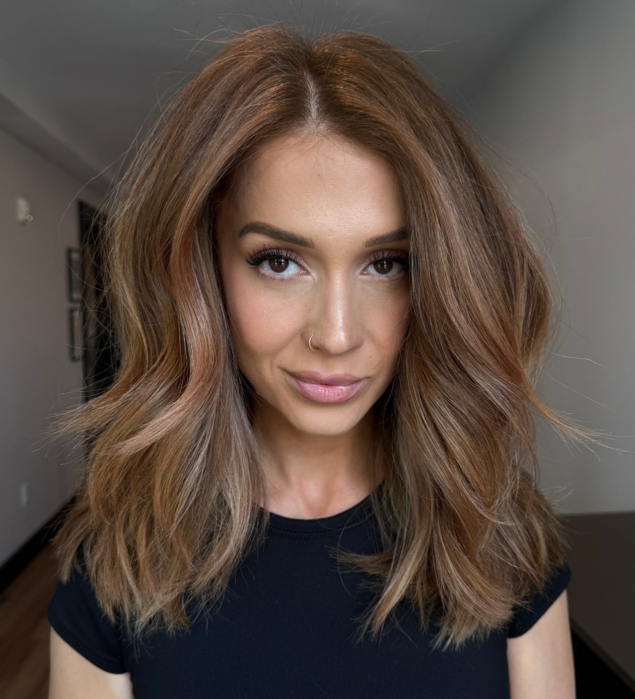 For a beachy, sun-kissed style that’s gorgeous year round, opt for a bright balayage and natural looking texture. You definitely can’t recreate this style with heat—it simply won’t look authentic enough. So, try a no-heat method like braids or scrunching your wet hair with a product and letting it air dry.