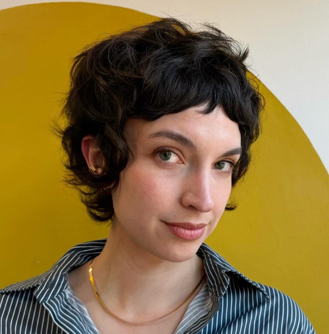 This heavy-layered modern shag haircut gives major volume and frames the face. A double-win for you! Complement your look with a flirty fringe to make your curly shag even more eye-catching.
