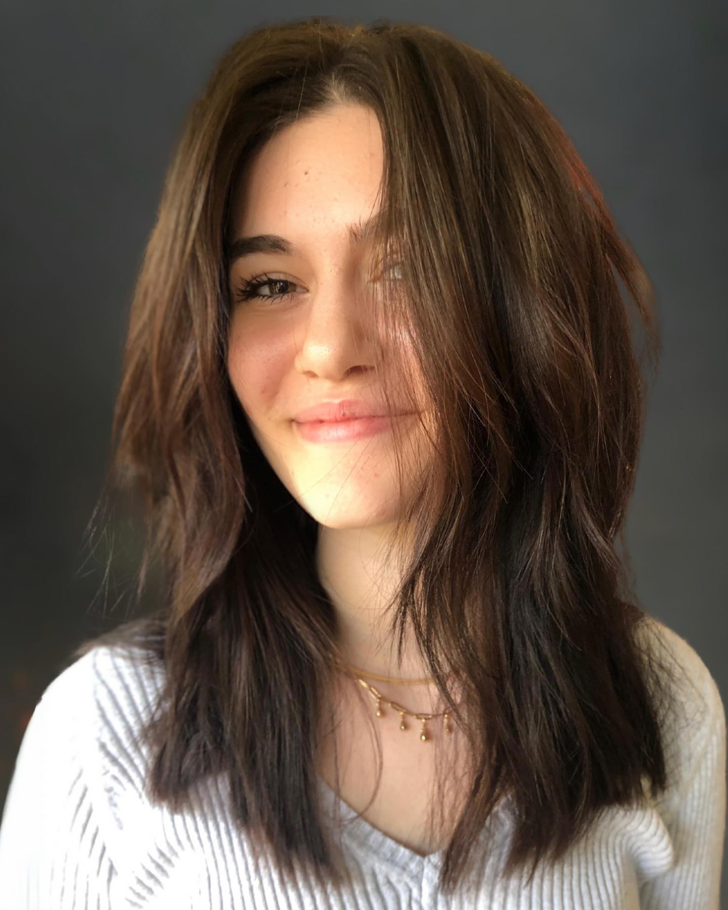 If you’ve got long hair and a long face shape, go for wavy layered hairstyles that break the length of your hair and don’t drag your face down. A classy and timeless style, it truly complements your face and is super versatile.