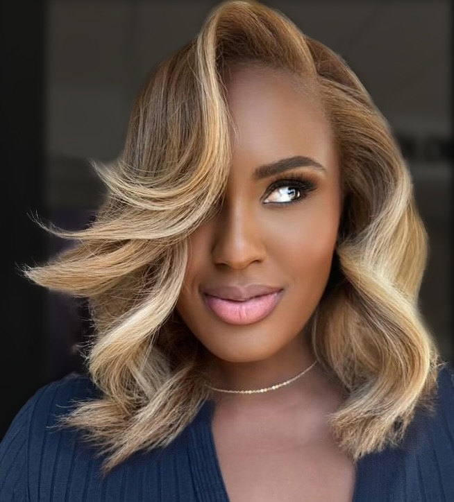A side part like this one is always a good idea if you have an oblong face. Side parts tend to really showcase the cheekbones and frame the face in a chic way with one side of your face revealed and the other covered. The asymmetry of this cut is very flattering, highlighting your best facial features.