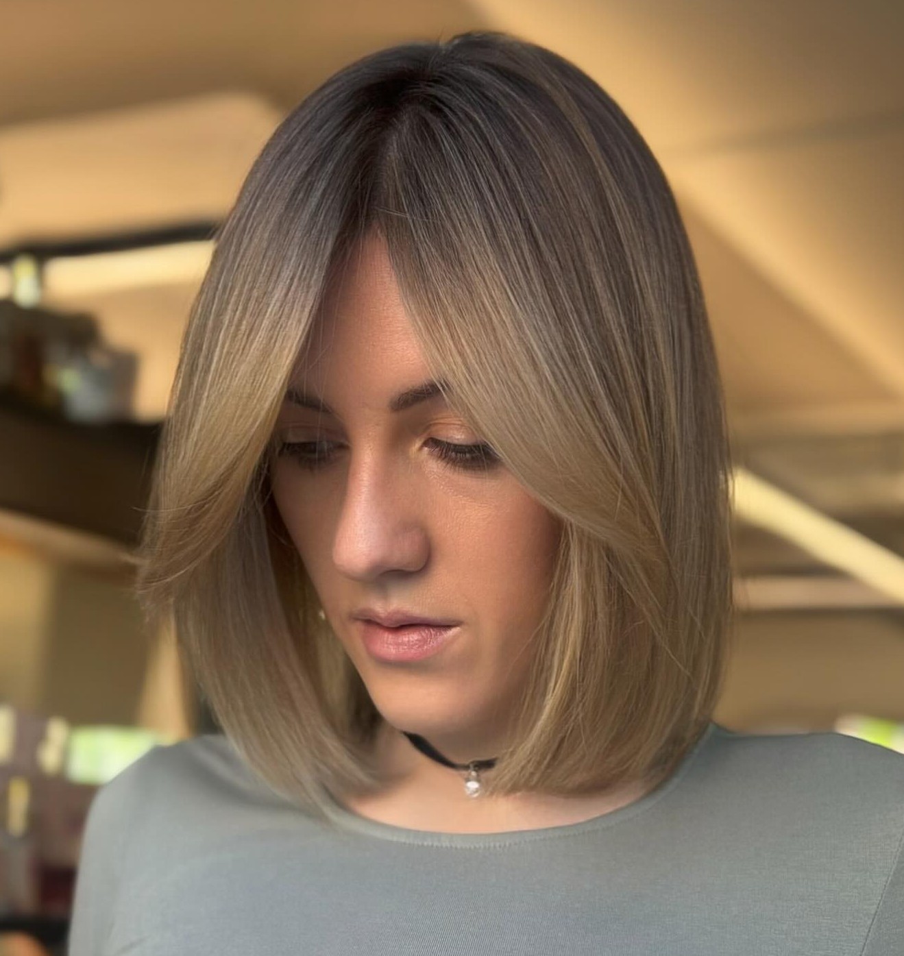 Flatter your face with this fresh and modern look. If you’re looking for shorter hair inspo, this style will definitely be to your taste, as it perfectly combines neat, wavy chin-length cut and sassy side bangs.