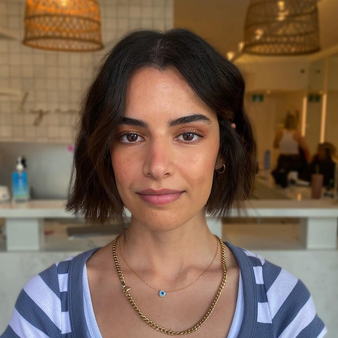 Flatter your face with this fresh and modern look. If you’re looking for shorter hair inspo, this style will definitely be to your taste, as it perfectly combines neat, wavy chin-length cut and sassy side bangs.
