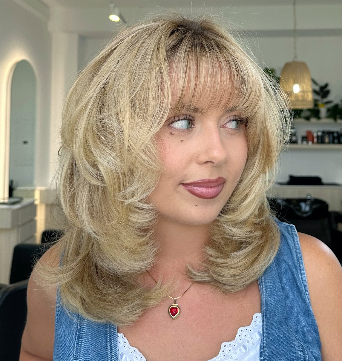 A feathered fringe goes especially well with a medium to long shags. You will definitely leave a fresh and dreamy impression on everyone who sees you and your new hairstyle.