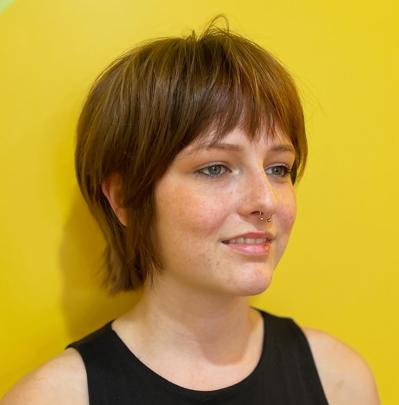The cutest pixie cut ever! Going super short typically makes bangs the star of the show, so why not go for some piecey asymmetry? Texturizing pomade is your best friend when styling super short bangs.