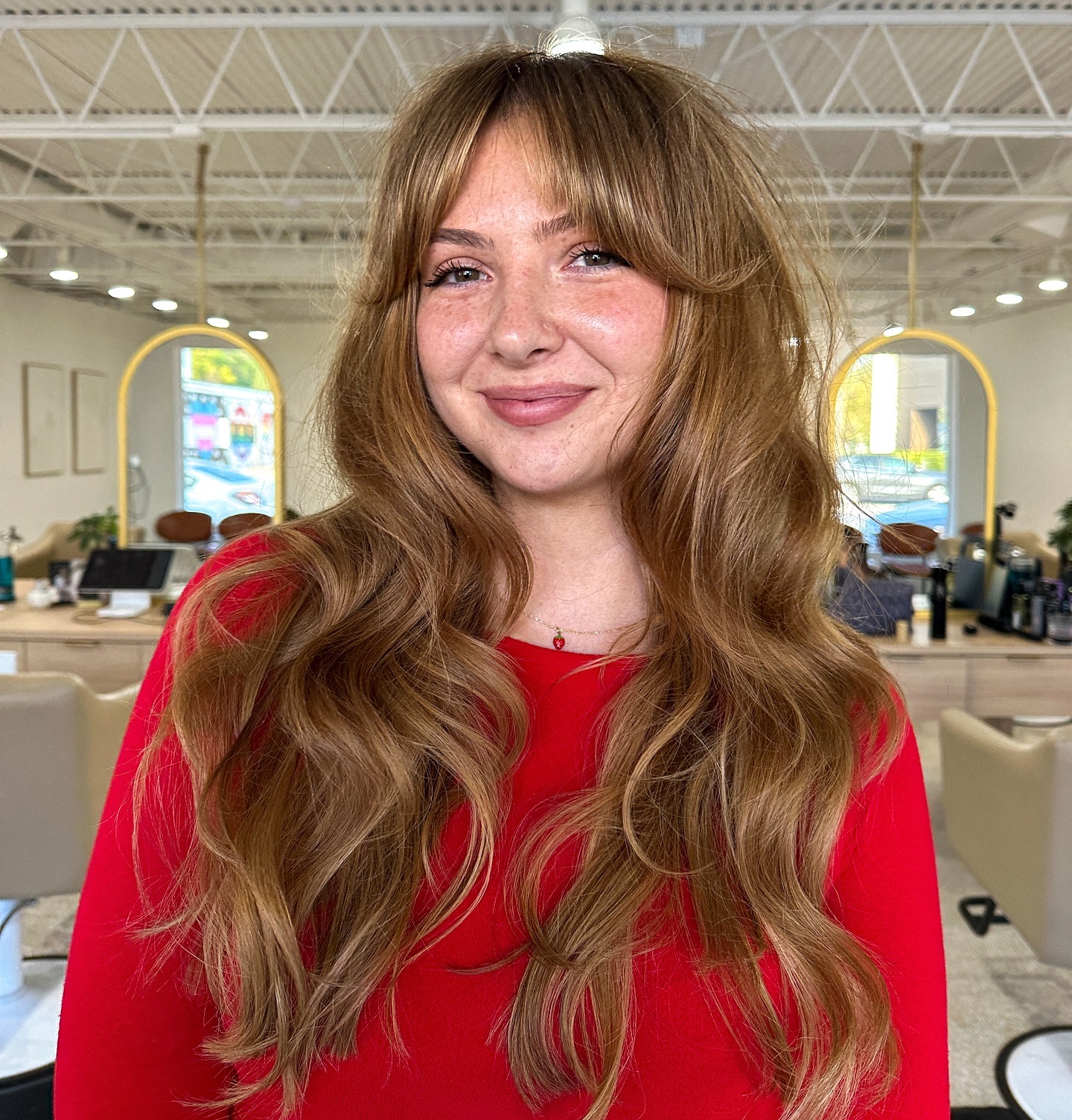 Young ladies searching a hairstyle for formal events like prom or winter formal will love these long loose curls with side-swept bangs. The style manages to look glamorous and polished, but still youthful and fun.