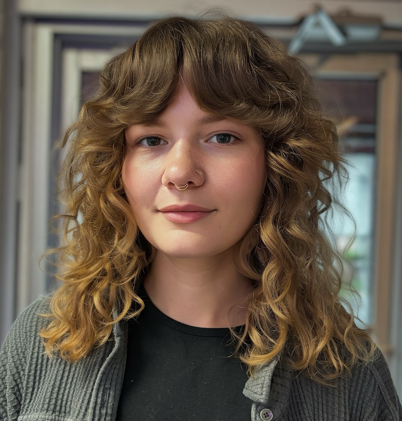 Medium hair can look more stylish and eye-catching than long hairstyles, and this cut is direct proof of that. To achieve this voluminous and textured look, you should ask your stylist to add wispy bangs and shorter layers. This will add playful and sassy vibes to your appearance.