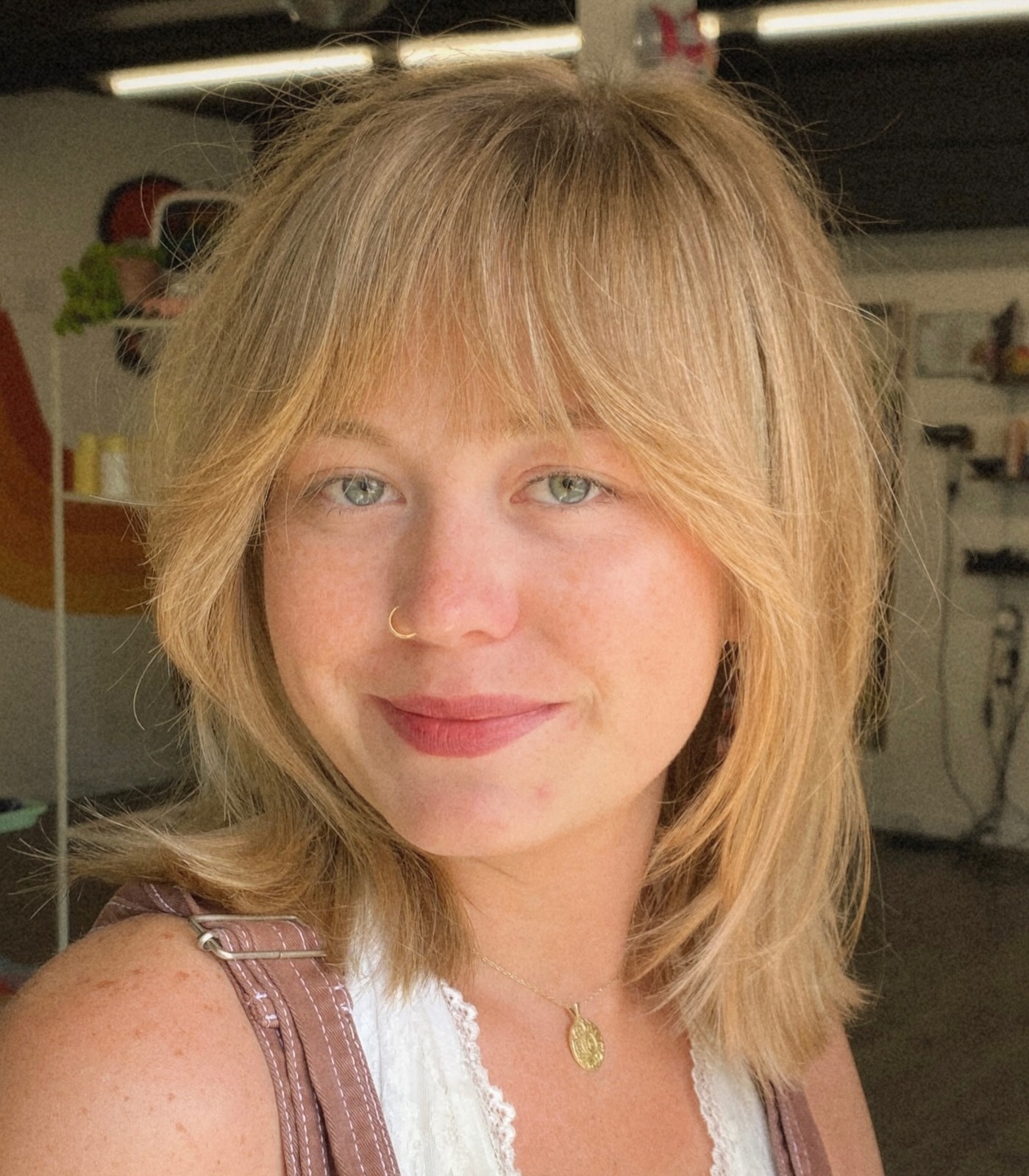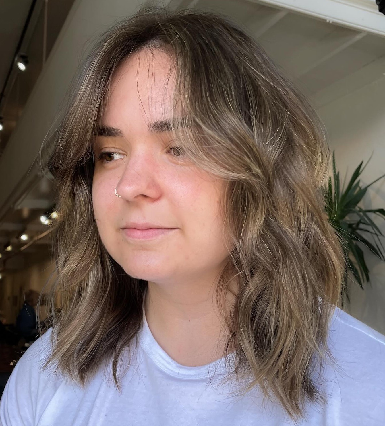 It is a common misconception to think that intricate styles work best for fuller faces. In reality, an easy one can sometimes be the better look. This shaggy style supports the theory. The layers and effortless texture are striking and flattering.