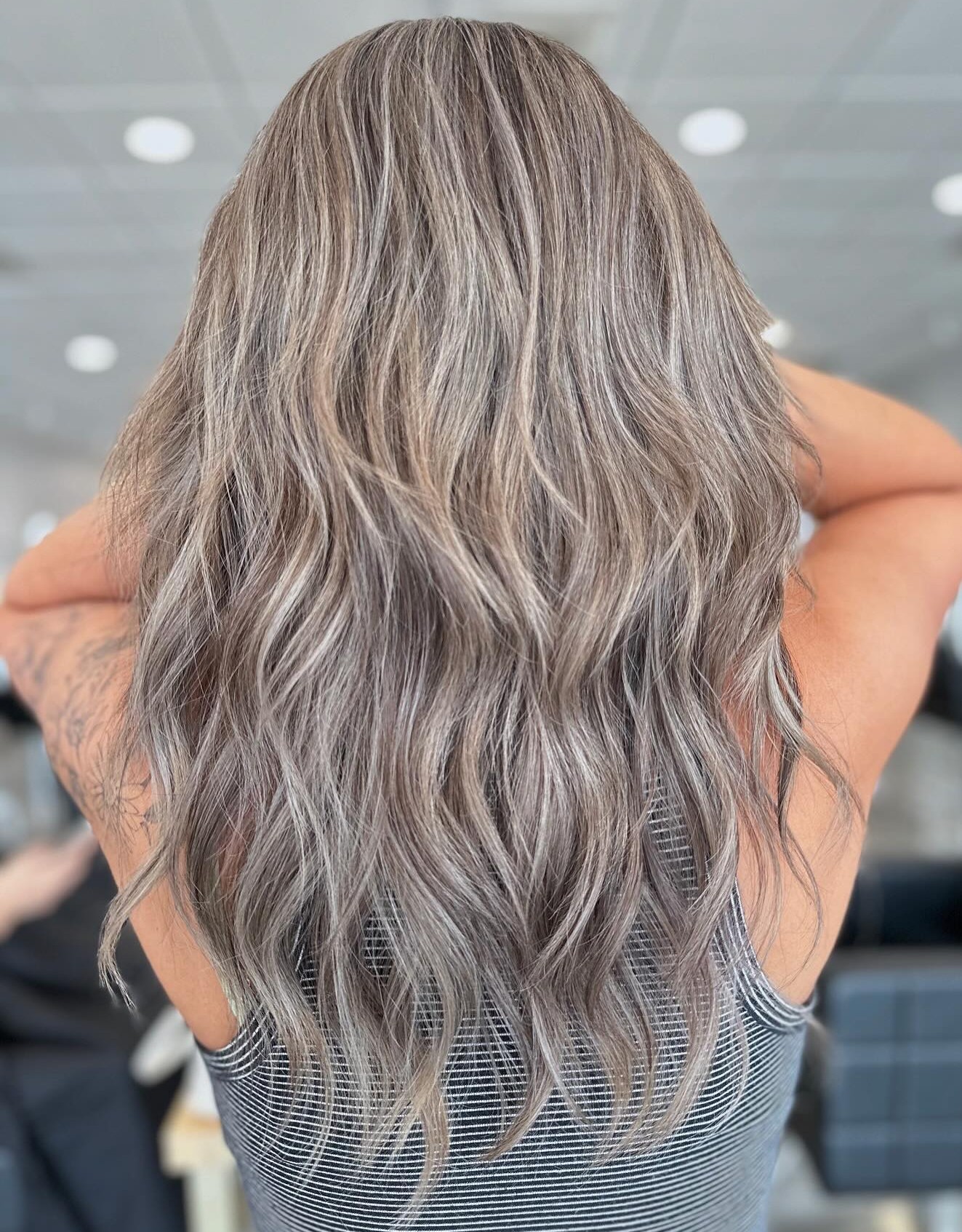 This forest-inspired palette combines shades of brown and blonde with nymph-like, elbow-grazing lengths. The minimum contrast of 2 to 3 levels will leave people wondering if your tresses are dyed or naturally sun-kissed. Woodsy ashy blonde suits those whose aesthetic leans toward low-maintenance.
