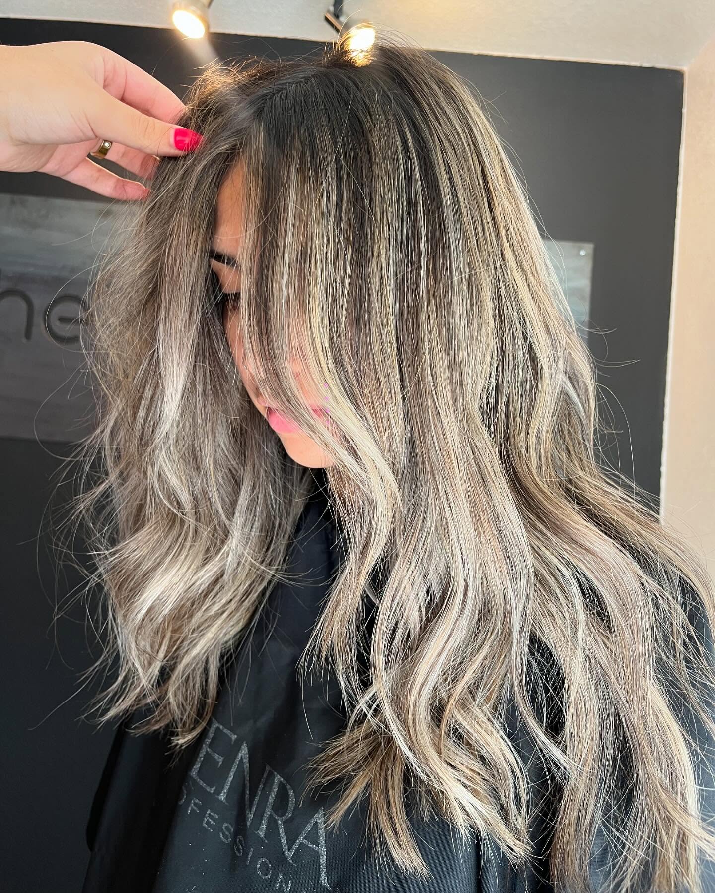Light ashy highlights look astonishing on long wavy hair as they bring texture and dimension to brown hair colors. Besides, you don’t need to lighten your roots every time you refresh your balayage.