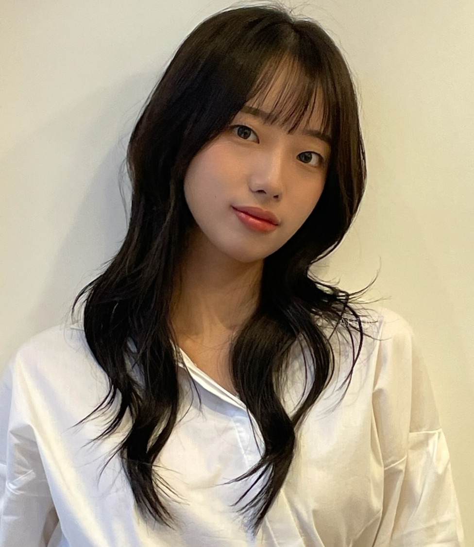 You’ll never go wrong with long wavy hair. This Asian girl has chosen a mind-blowing mixture of warm chocolate hues and loose waves to achieve a glamorous feminine look.