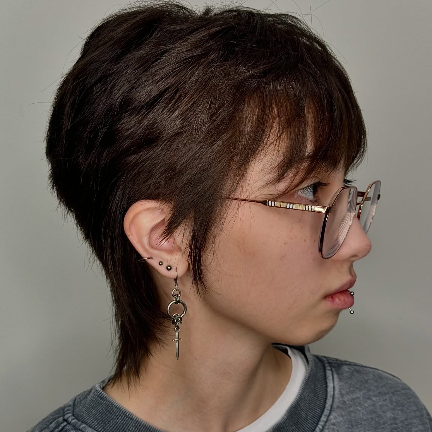 This long messy pixie with bangs looks gorgeous on women of all ages. Ash gray is what makes it look genuinely outstanding. If you’re looking for something eye-catching and low maintenance at the same time, steal this idea!