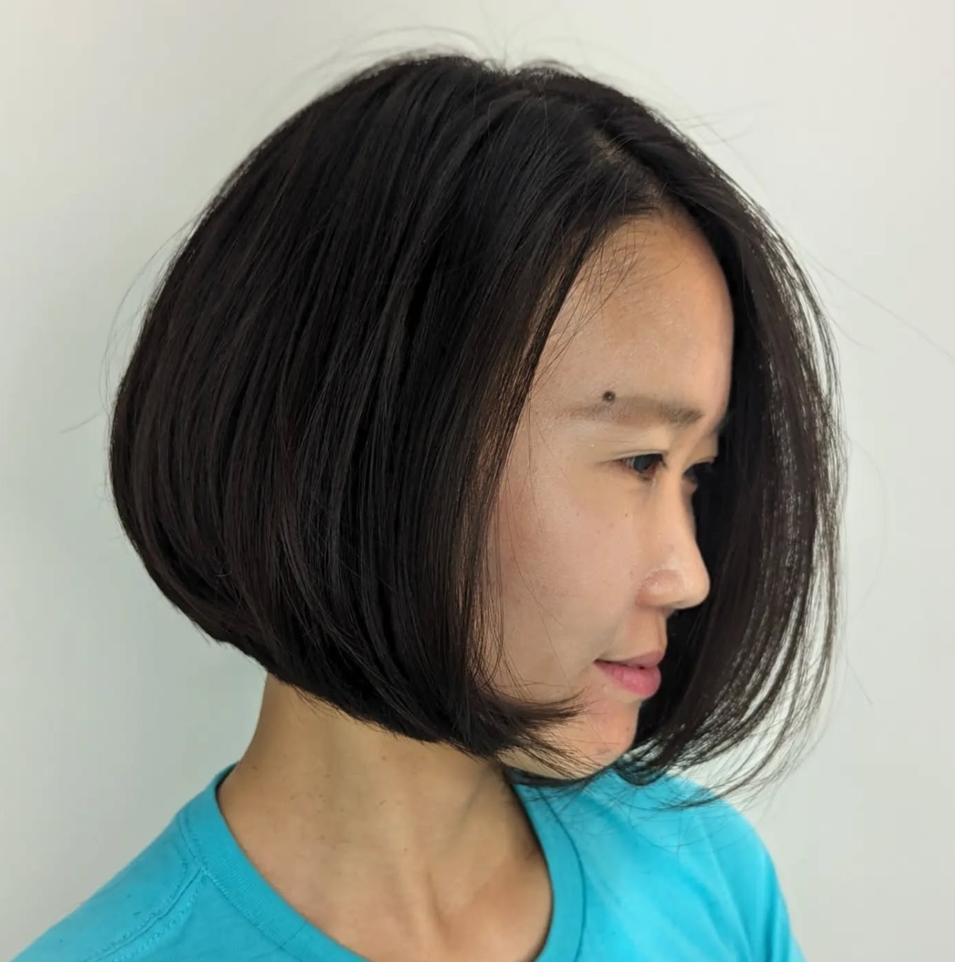 Classic is never out of style! We can’t get enough of this flawless straight chin-length bob that looks exceptionally flattering on silky Asian hair. Blunt ends and middle parting make this hair look impressively attractive.