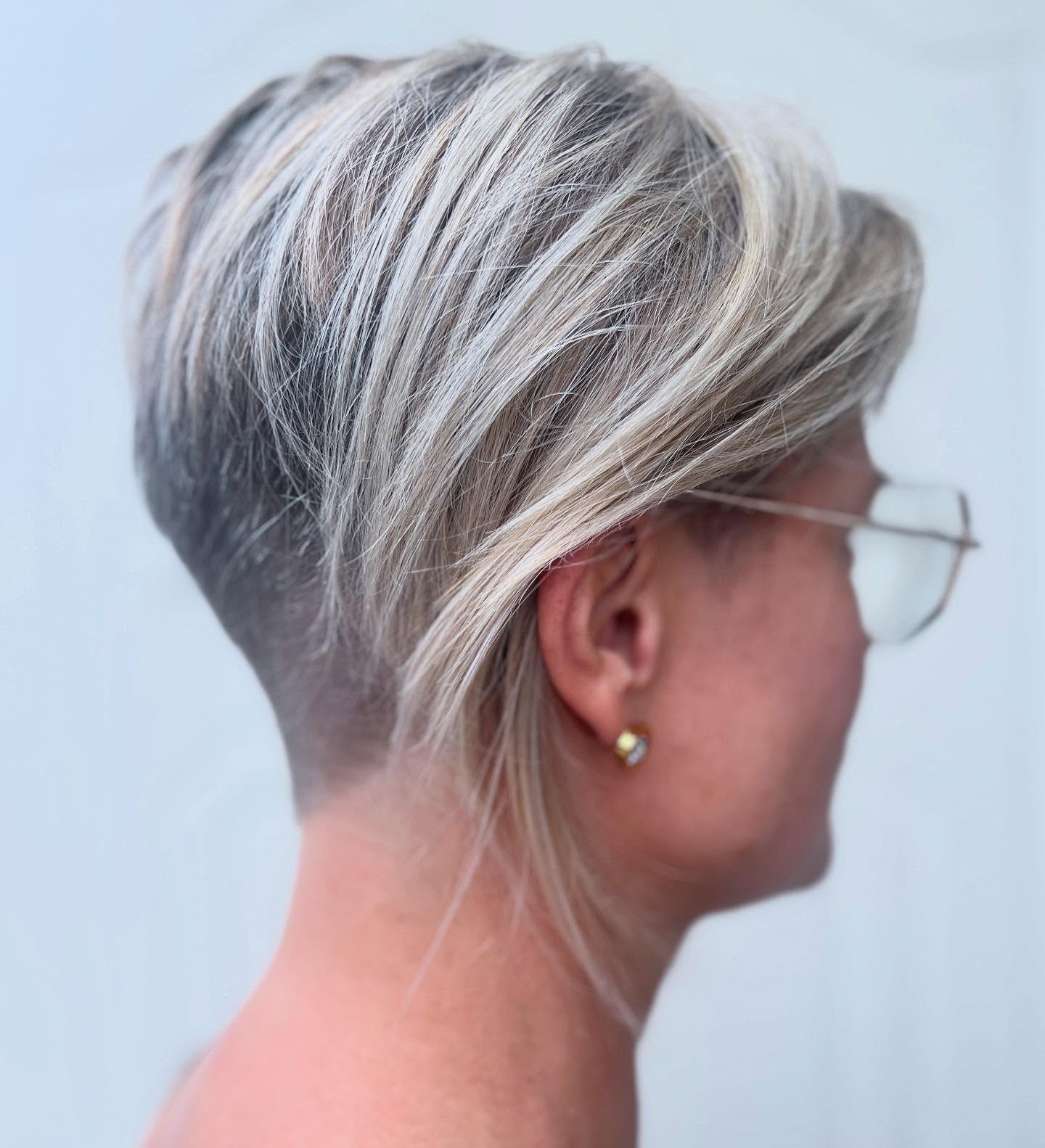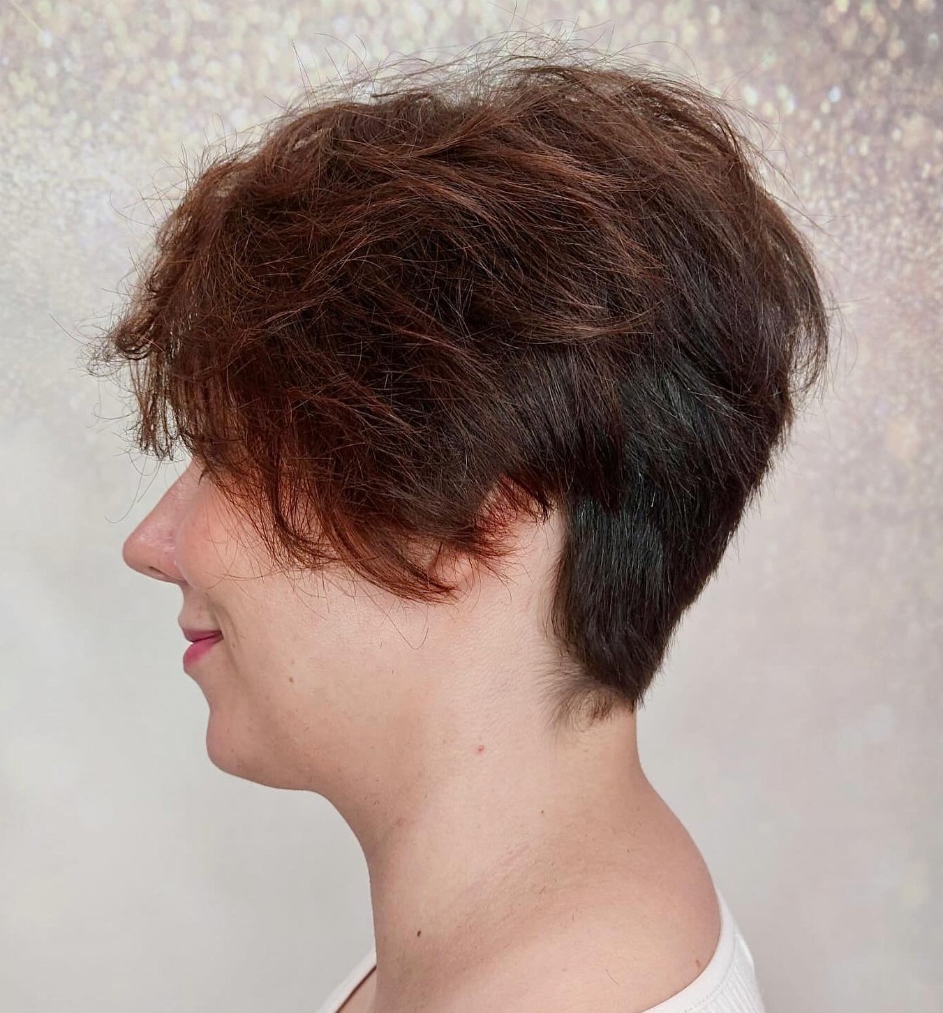 If you are looking for a haircut ideal for thin hair, a graduated pixie cut with asymmetrical angles may work best for you. When it comes to styles for fine hair, hairdressers like to add in body by “stacking” the cut. This boosts volume and produces the best end result.
