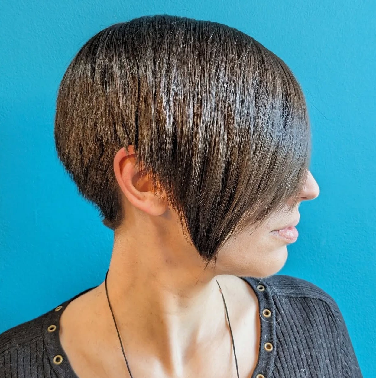 If you plan to visit a salon to get a new cut, be sure to bring pictures that include a side view of your desired chop. It’ll give your hairdresser the inspiration they needs to get this amazing do just right — from the graduated back to layered side bangs, show your perfect cut from all angles!
