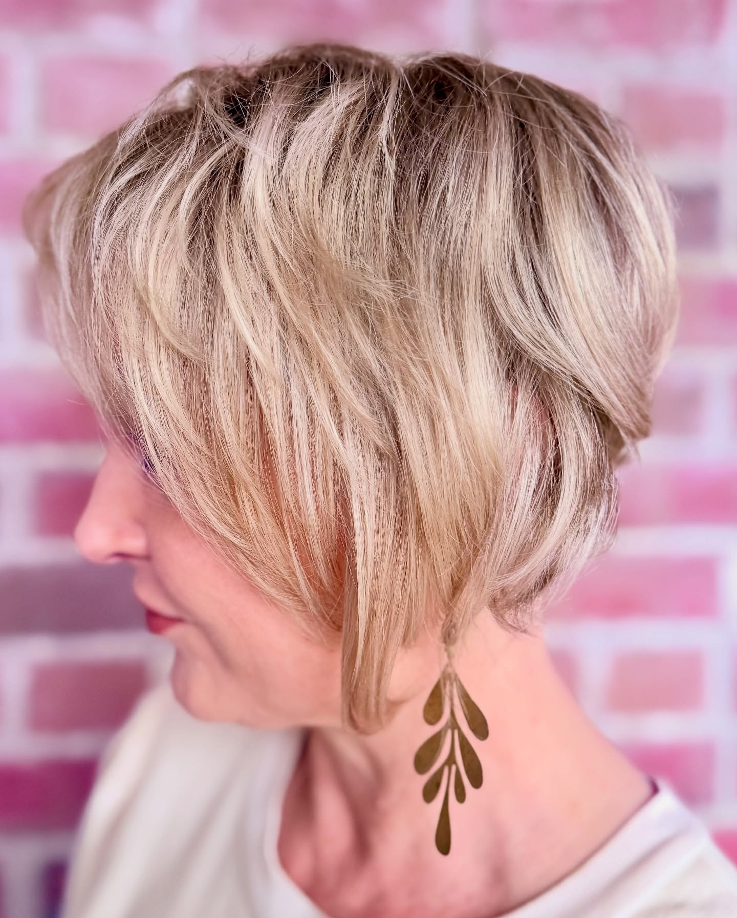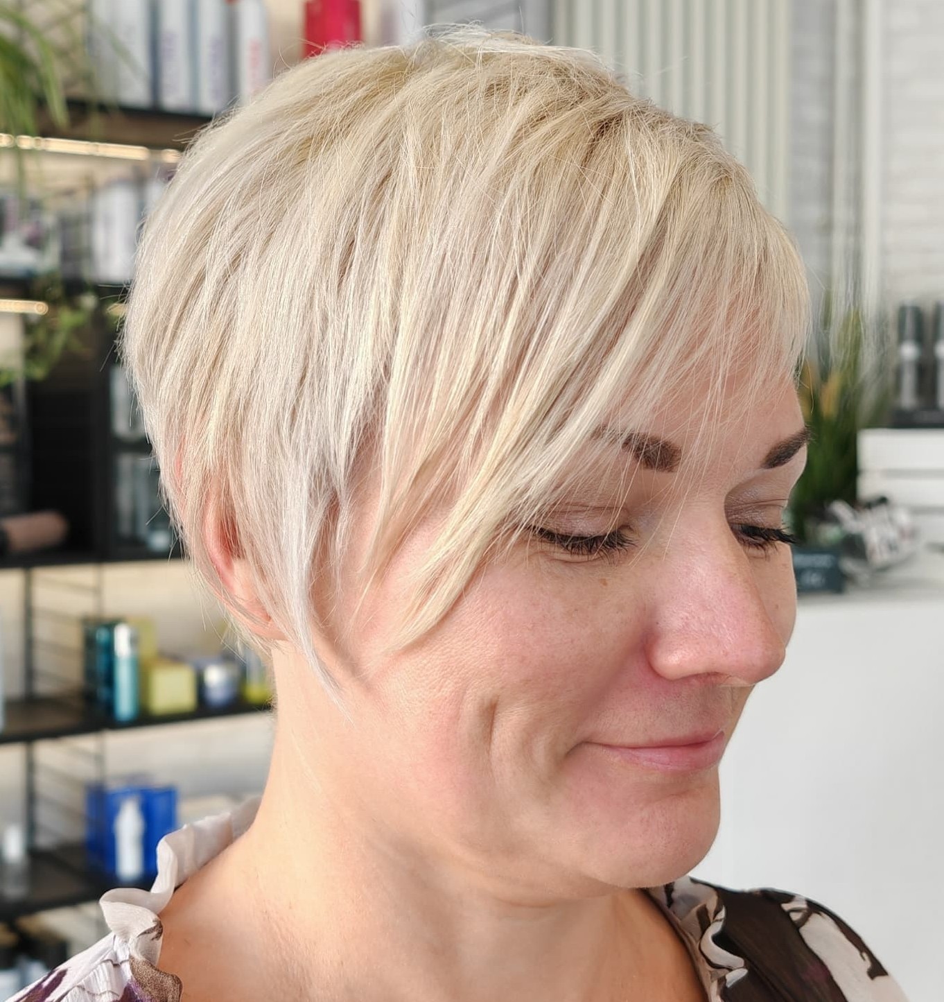 If you are looking for a haircut ideal for thin hair, a graduated pixie cut with asymmetrical angles may work best for you. When it comes to styles for fine hair, hairdressers like to add in body by “stacking” the cut. This boosts volume and produces the best end result.